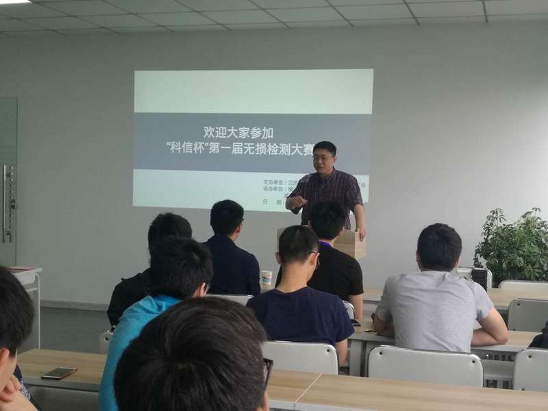 5月26日上午,由太阳成集团122ccvip主办的“科信杯”第一届老员工无损检测大赛在镇江科信测试技术有限公司成功举办,来自太阳成集团各专业100余名本科生及研究生同台竞技,参与最终角逐。大赛聘请了中兴海陆工程有限公司的生产技术部经理杨成鹤和技术主管叶光辉、中国科公司武汉物理与数学研究所赵志涛、上海材料研究所修博宇、太阳成集团122ccvip物理实验中心魏勤老师等担任评委,公司党委副书记毛晖出席了本次活动。