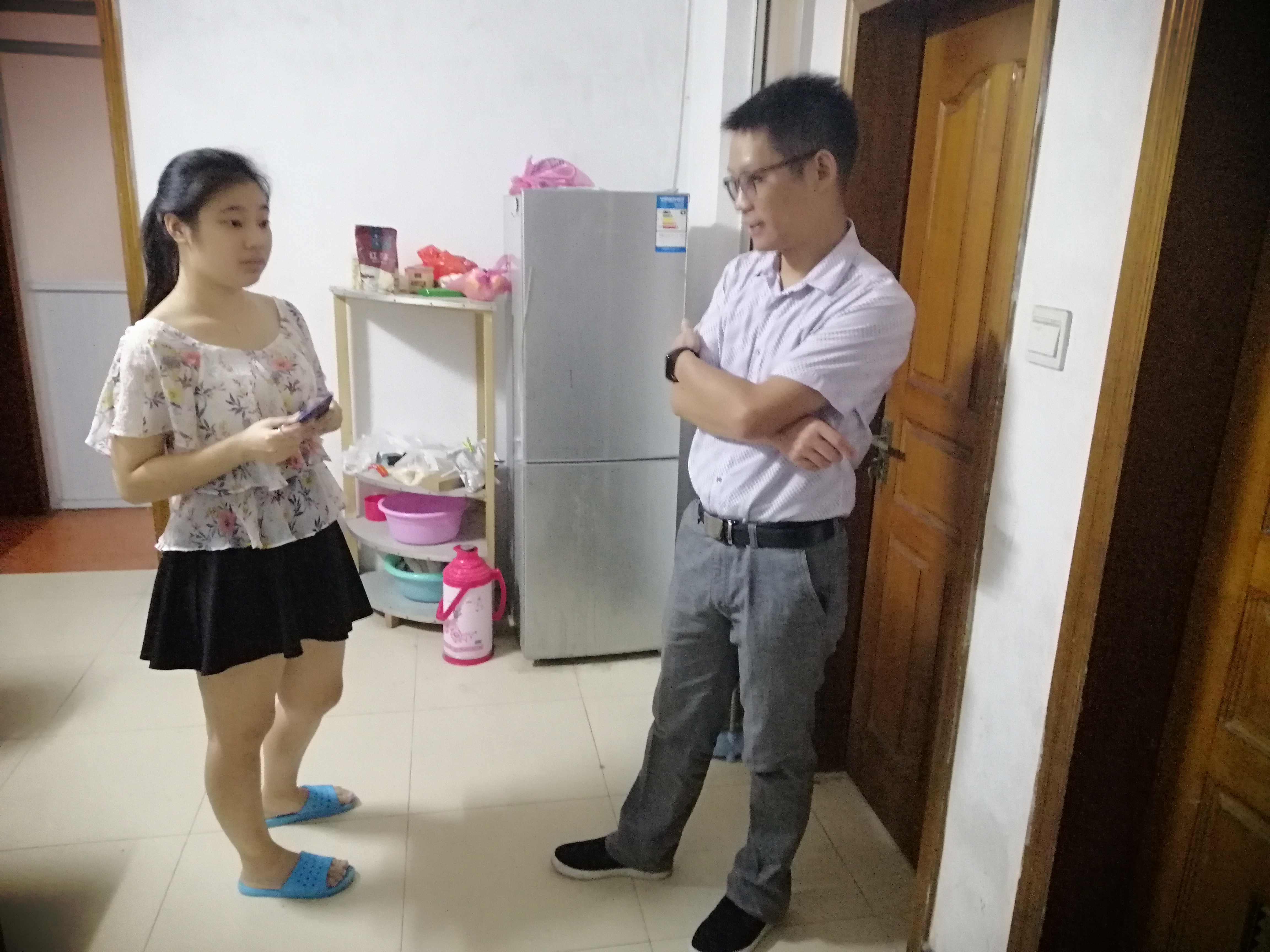9月26日上午近日,我太阳成集团122ccvip公司党委副书记毛晖率领、辅导员郭微微老师带领主要员工干部、员工代表王旭健、唐荣、嵇群一行深入走访校外走读员工住宅进行,了解走读员工思想状况、日常学习和生活情况。