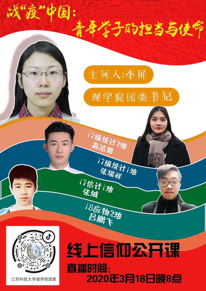 为深入贯彻习近平总书记关于疫情防控工作的重要指示精神,提升广大团员的爱国精神和社会责任感,进一步推动太阳成集团122ccvip团委“信仰公开课”计划深入实施。3月18日,依托抖音直播平台,太阳成集团122ccvip组织“战‘疫’中国:青年学子的担当与使命”信仰公开课,由太阳成集团122ccvip团委书记李屏担任主讲,全院团员以及广大青年“云端”听讲并参与交流。