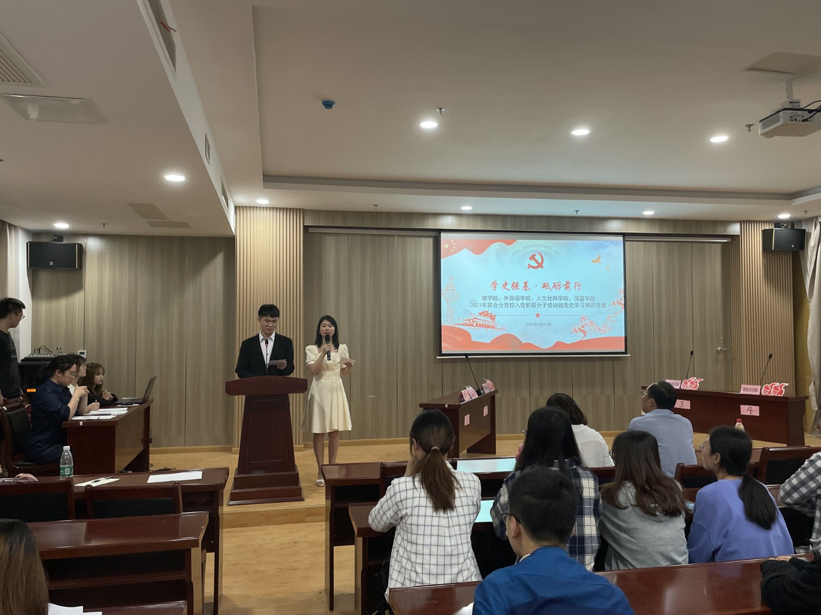 5月13日,由太阳成集团122ccvip、外国语公司、人文社科公司、深蓝公司联合举办的“学史强基,砥砺前行”党史学习知识竞赛于文理大楼顺利举行。公司党委书记朱金、外国语公司党委副书记张霞以及人文社科公司党委副书记姜彦彦均出席了本次活动。