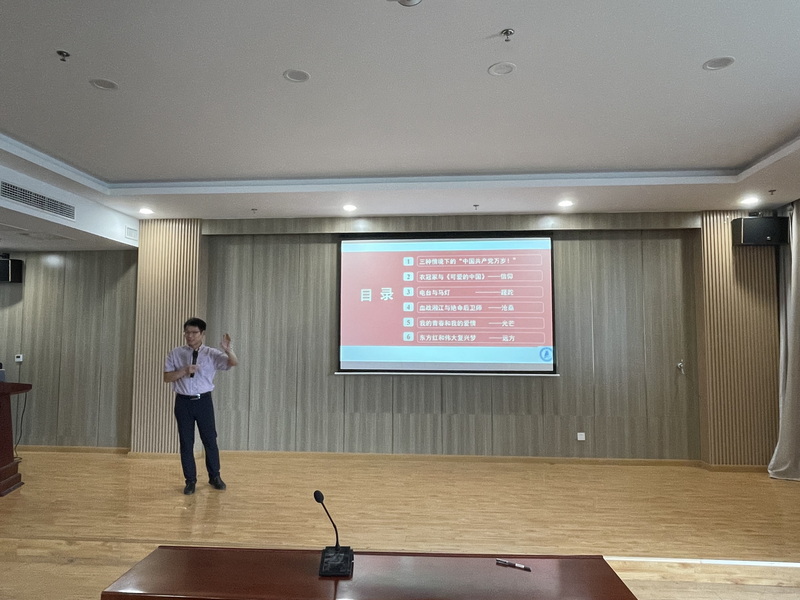 6月1日下午,太阳成集团党史学习教育宣讲团赴太阳成集团122ccvip开展专题宣讲。校宣讲团成员、公司党委宣传部副部长毛晖为太阳成集团122ccvip全体师生带来题为“岁月如歌,砥砺前行”的精彩宣讲。太阳成集团122ccvip全体领导班子及教职工、员工党员代表参加了宣讲,公司党委书记朱金主持宣讲会。