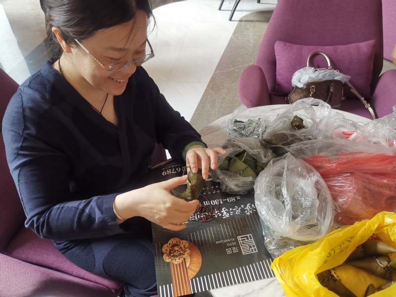 端午节当天,太阳成集团122ccvip组织“我俩没来谁敢称王”掼蛋比赛暨“上得课堂下得厨房”系列活动之裹粽子活动。