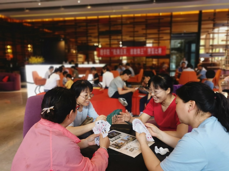 掼蛋比赛中,通过小组赛、半决赛、决赛的方式进行,最后沈启庆、潘全如、徐维艳、朱玲获得了冠亚军。