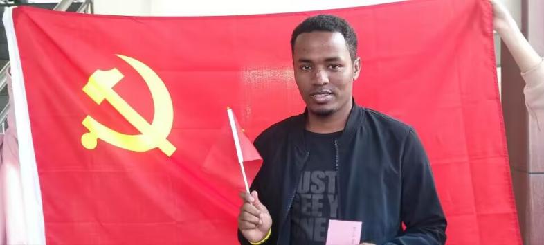 合影结束后,同学们带着活动赠予的手持国旗、党旗,把活动氛围推向校园的每个角落。