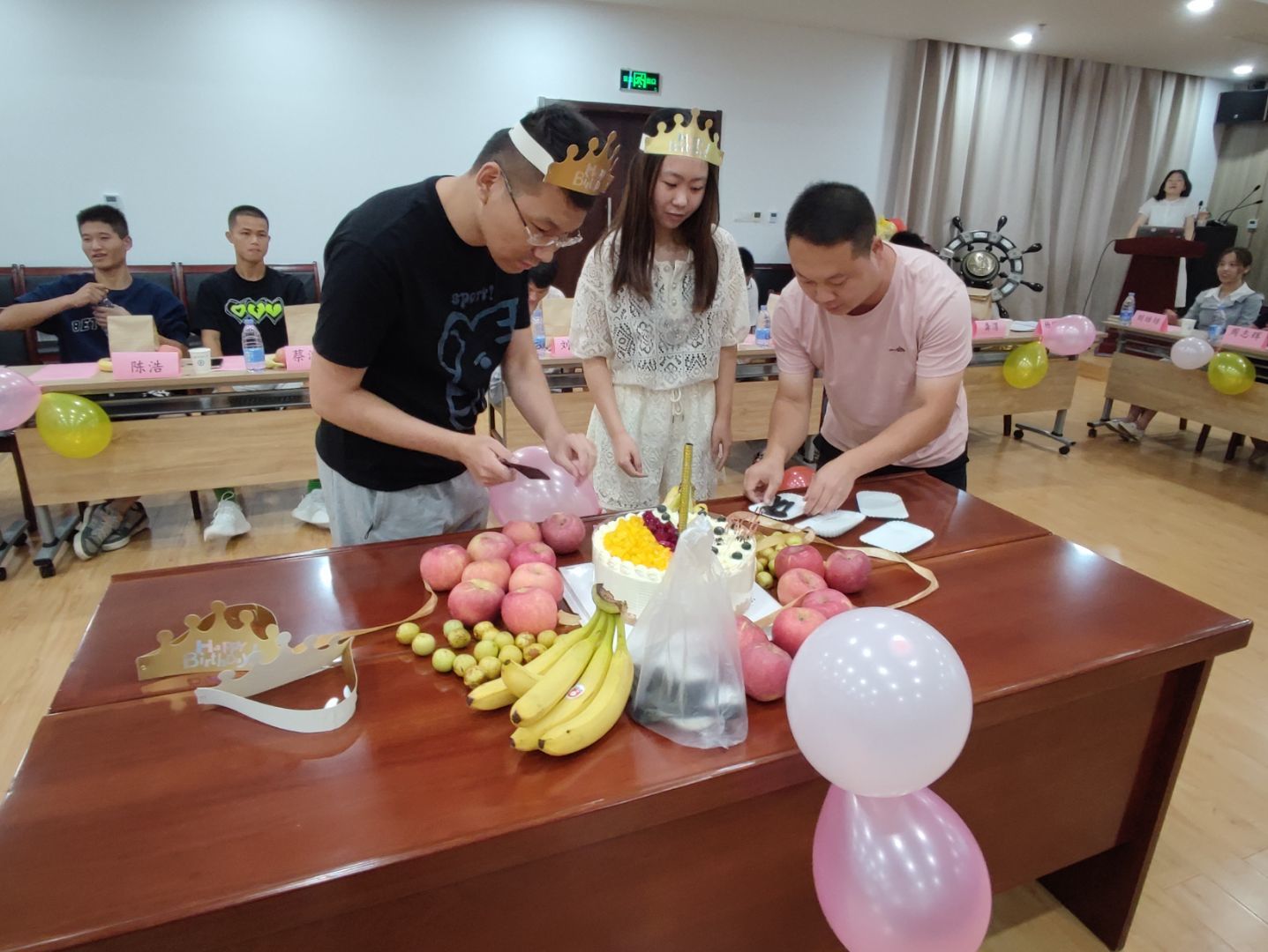 当公司党委副书记周志辉问及大二同学搬校区后有什么感受时,王雅琦同学激动的表达自己对新校区饭菜和建筑设施风格的喜爱,“来到新校区后,我感觉到这才是我在上高中时憧憬的理想大学样子。”部分大二的同学也表示对今后的专业学习感到迷茫。针对大二同学的困惑,大三的同学分享了自己的学习经历,提出了学习建议。随后公司领导为大家分发慰问品,并为三位在活动当天过生日的同学准备了生日蛋糕。在生日歌的音乐声中,在场的老师和同学们一同为他们庆生,并送上祝福。