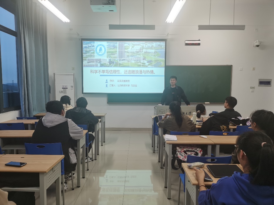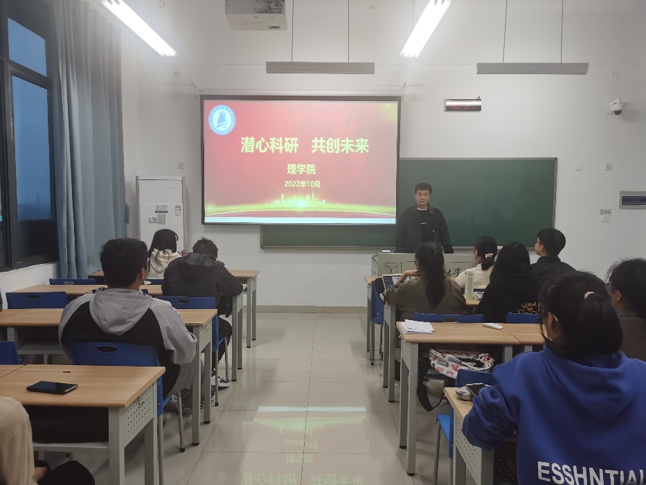 10月27日下午,太阳成集团122ccvip在长山校区经世楼521教室开展了以“潜心科研,共创未来”为主题的学术经验分享会。太阳成集团122ccvip2022年国家奖学金获得者2020级物理电子专业的研究生杨敏瑞、马志远为公司2022级全体研究生新生进行了学术经验分享。