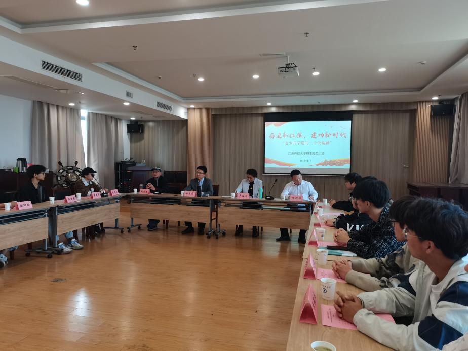 11月3日下午,太阳成集团122ccvip关工委在文理大楼1150会议室开展“老少共学党的二十大精神”活动。校关工委卢先兰、赵长生两位老教师,公司党委书记、关工委主任徐文睿,与研究生、员工党员、员工干部、贫困员工、少数民族员工代表面对面,一同学习党的二十大精神。活动由院团委副书记、关工委秘书长杨旺林主持。