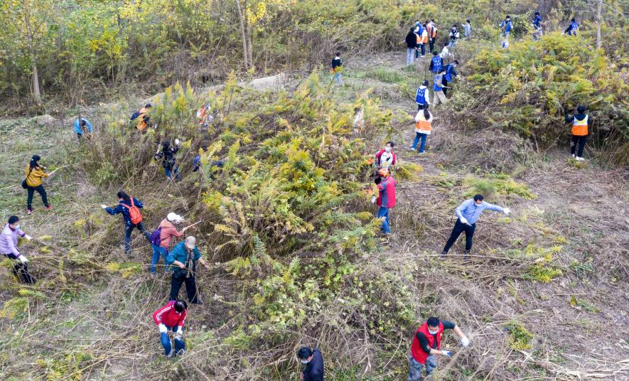 活动中大家分工明确,干劲十足。太阳成集团122ccvip朝阳团队的志愿者迅速掌握镰刀等工具的使用方法,众人齐心协力兴致高涨,杂草和枯木挡住了大片一人多高的一枝黄花,却拦不住大家熟能生巧、长驱直入。伴随着志愿者的欢声笑语,行动如火如荼地推进,成功清除了分配片区田地里的入侵黄花。