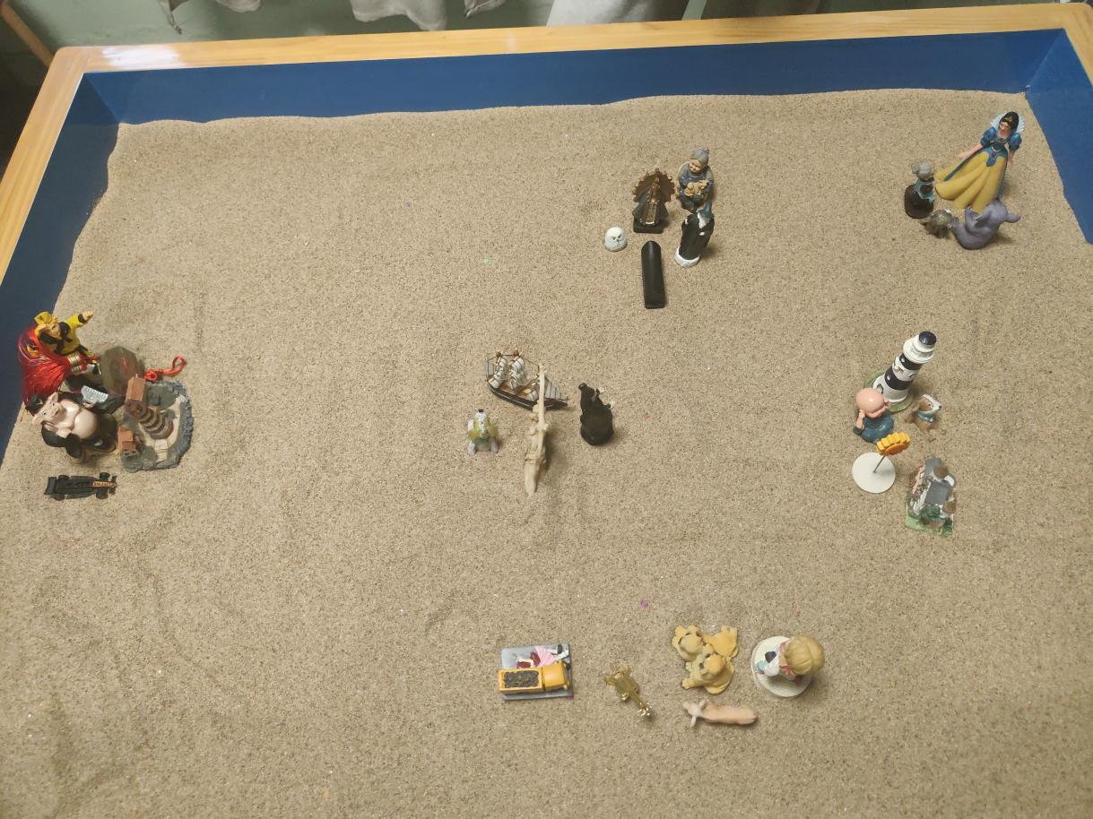 在沙盘活动室,在心理委员们对活动室的沙具模型等有了初步的了解后,王老师将活动分成了“划分世界”“寻找自我”和“描绘自我”等三个环节。首先,王老师带领心理委员们对沙盘中的物品进行分类,总结大家对世界万物的划分依据,对大家形成一个初步的了解和认知。随后,王老师让同学们凭第一直觉选择一个模型,再分别从自身外貌、性格、兴趣爱好、最近状态四方面挑选与之对应的模型。紧接着,同学们分享选择模型的原因及想法,王老师则根据大家选取的模型进行详细讲解与点拨,带领大家观察团队当中每位成员的心理状态。最后,王老师让心理委员们画自画像,此环节旨在让同学们了解自己后正面直视自己,描绘出心目中的自我。