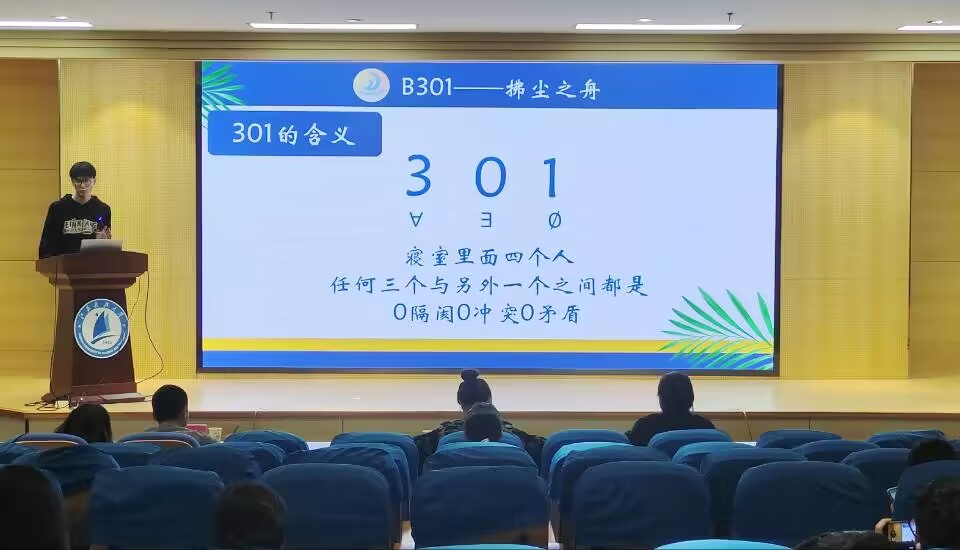 辅导员刘培培介绍“宿舍文化营造日”活动方案,公司确定每周一为公司宿舍文化营造日,全体同学在每周一集体清理宿舍卫生,开展文化活动,打造积极健康的宿舍文化。