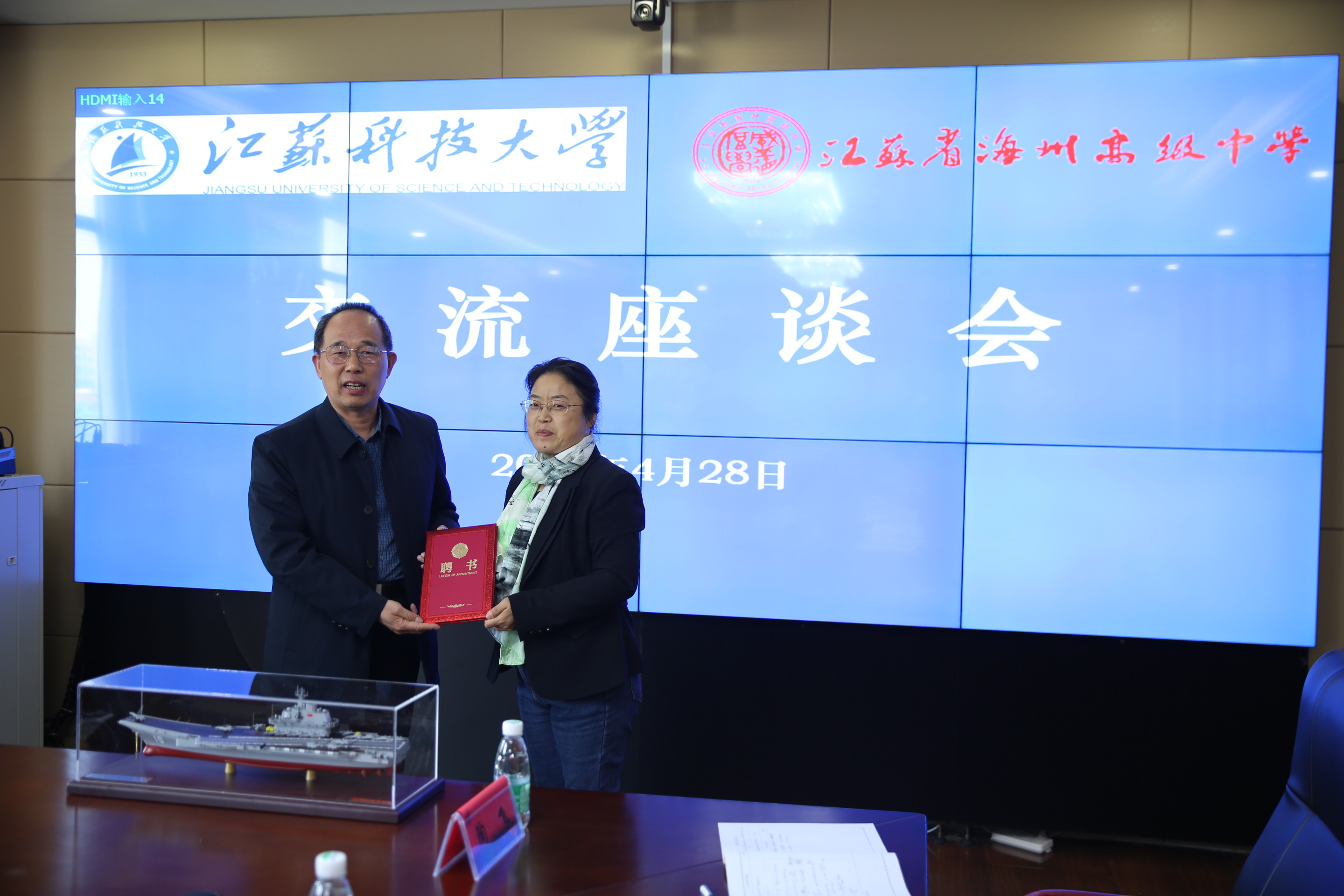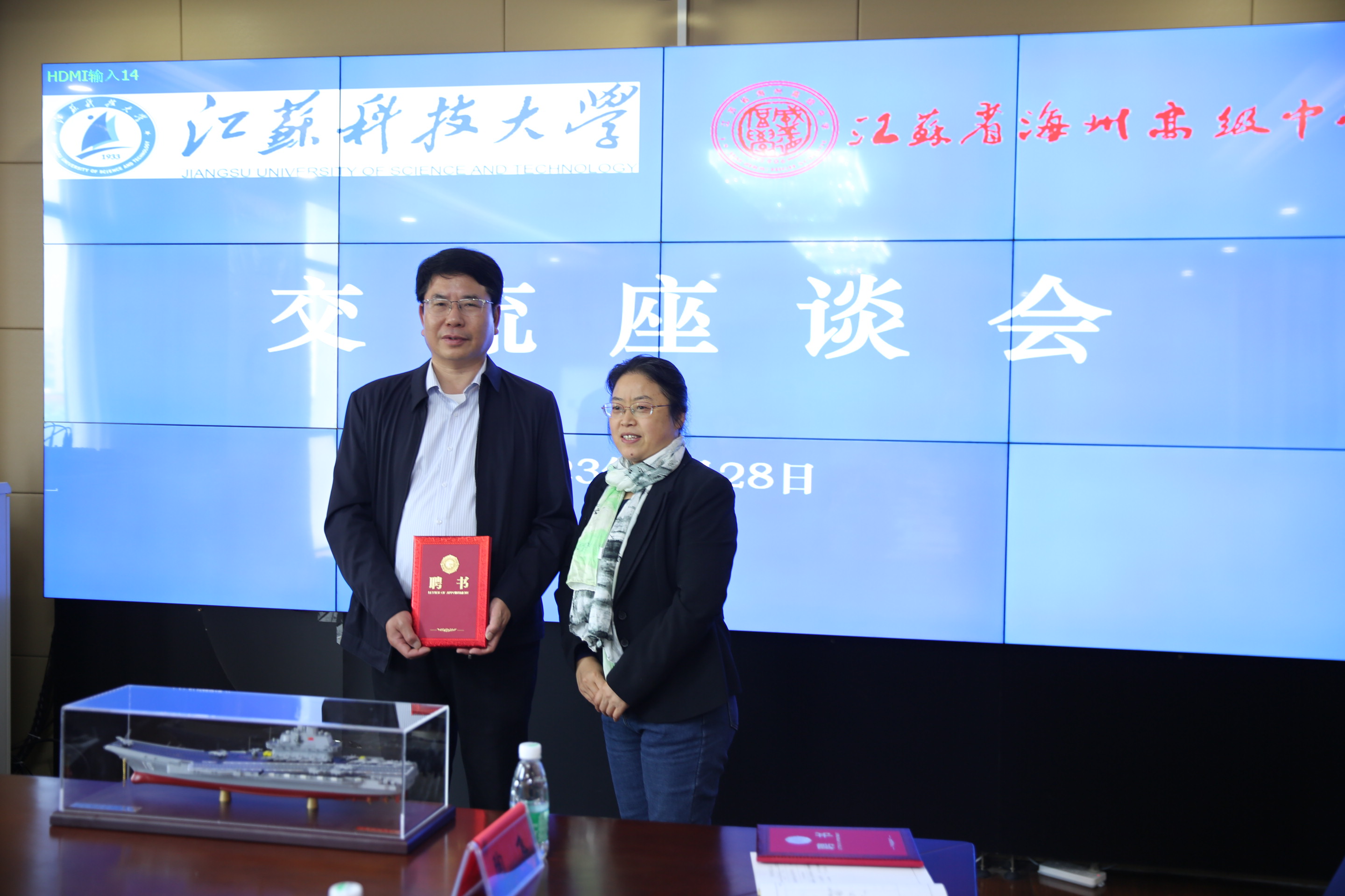 海州高级中学党委书记周艳向蒋春雷颁发特聘教授证书