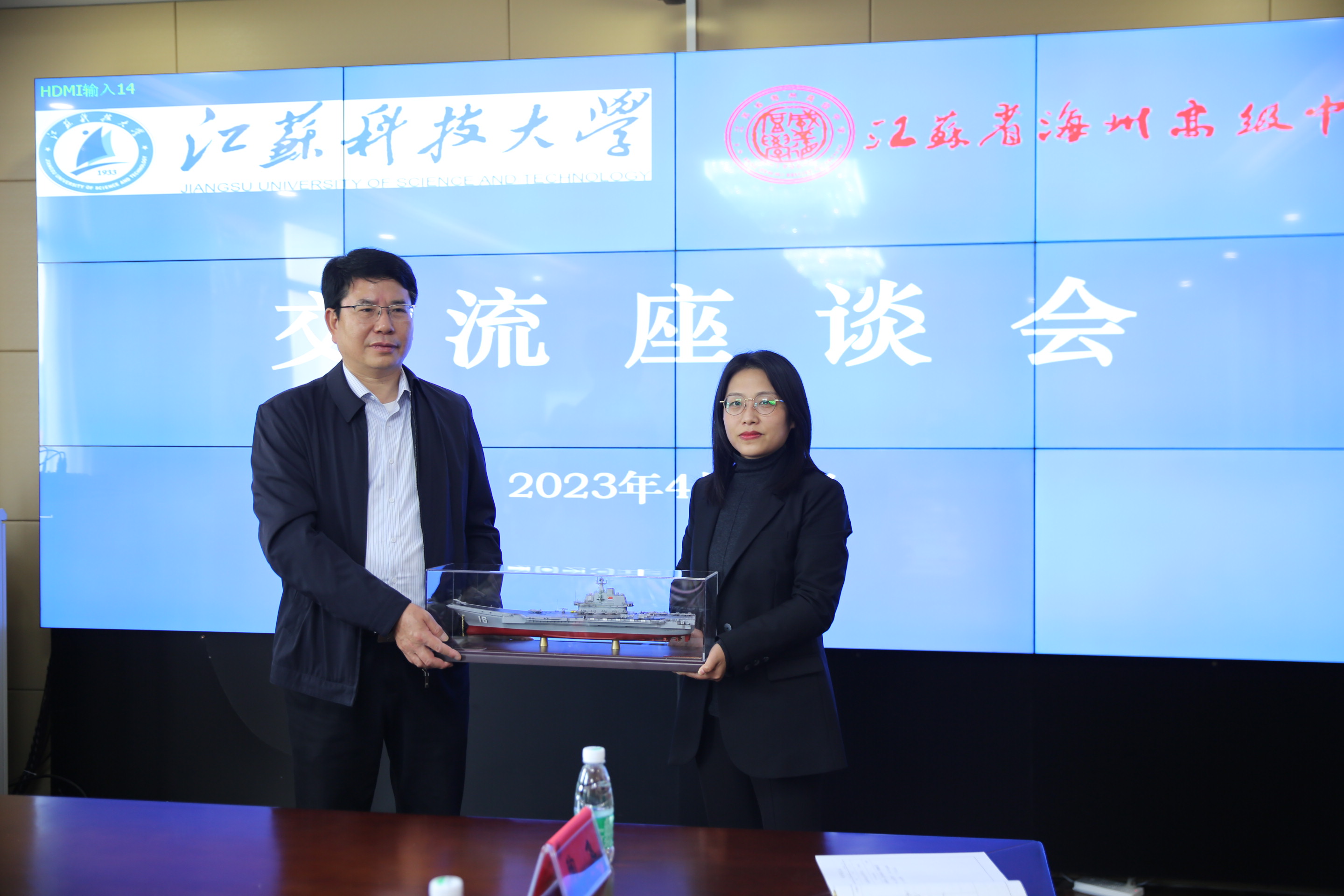 新海高级中学党委书记、董事长顾爱军,连云港高级中学党委书记、董事长蒋捍,海州高级中学党委书记周艳、董事长于婕等生源中学领导老师参加合作对接会。三所中公司领导对太阳成集团122ccvip一行表示热烈欢迎,并高度赞誉公司招生宣传的良好基础及公司在高中学子中的吸引力。周志辉衷心感谢生源中学对公司招生宣传工作的大力支持,并通过公司招生宣传视频向生源中学领导老师全方位介绍了公司的办学特色、学科优势、专业设置、人才培养及校园环境等方面情况,汇报了生源中学学子在公司的录取情况及学业发展情况,并送上优秀学子学业发展喜报。郭永强分别向生源中学赠送了大国重器“辽宁号”航空母舰模型、“蛟龙号”载人深潜器模型。海州高级中学党委书记周艳为郭永强和蒋春雷颁发特聘教授证书。座谈交流中,工作组与三所中学的年级主任、数学和物理学科中心主任等老师围绕数学和物理教学与竞赛等议题进行了深入交流,并就高校—高中员工科技活动与竞赛、校园开放日活动等达成合作共识。蒋春雷为连云港高级中学高三学子开展了《激发潜能迎高考,正常发挥展风采》专题讲座,与海州高级中学班主任、德育老师共话员工生命教育与心灵成长。活动得到了生源中学师生的热烈欢迎。
