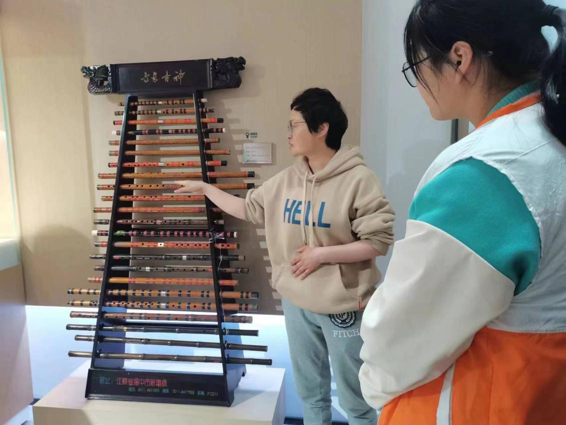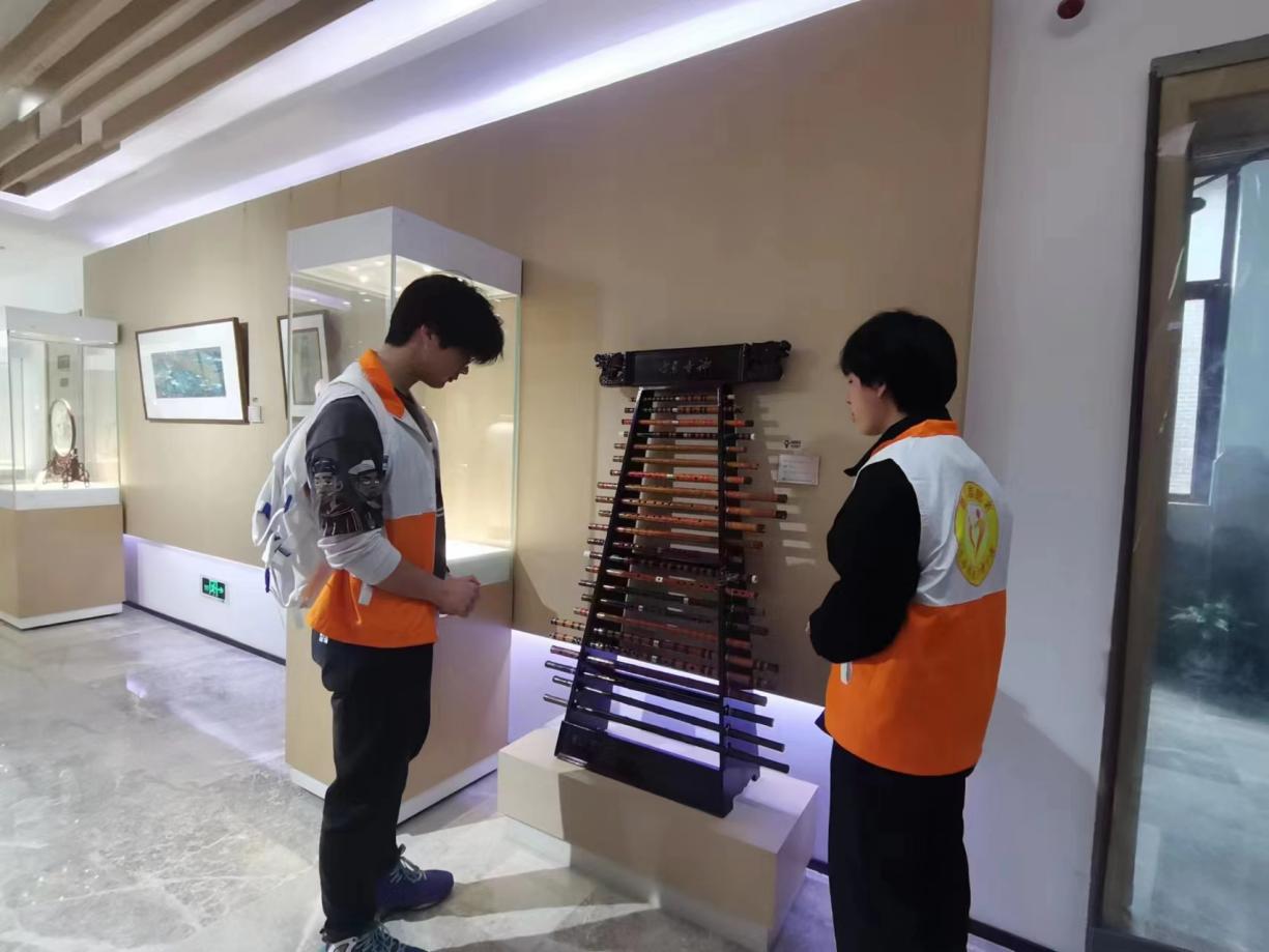 参观过程中,通过讲解员对箫笛文化的全面介绍,志愿者们对不同长度的箫笛制作工艺产生了浓厚的兴趣,并针对不同长度的箫笛所发出的音色、音质等展开激烈探讨。