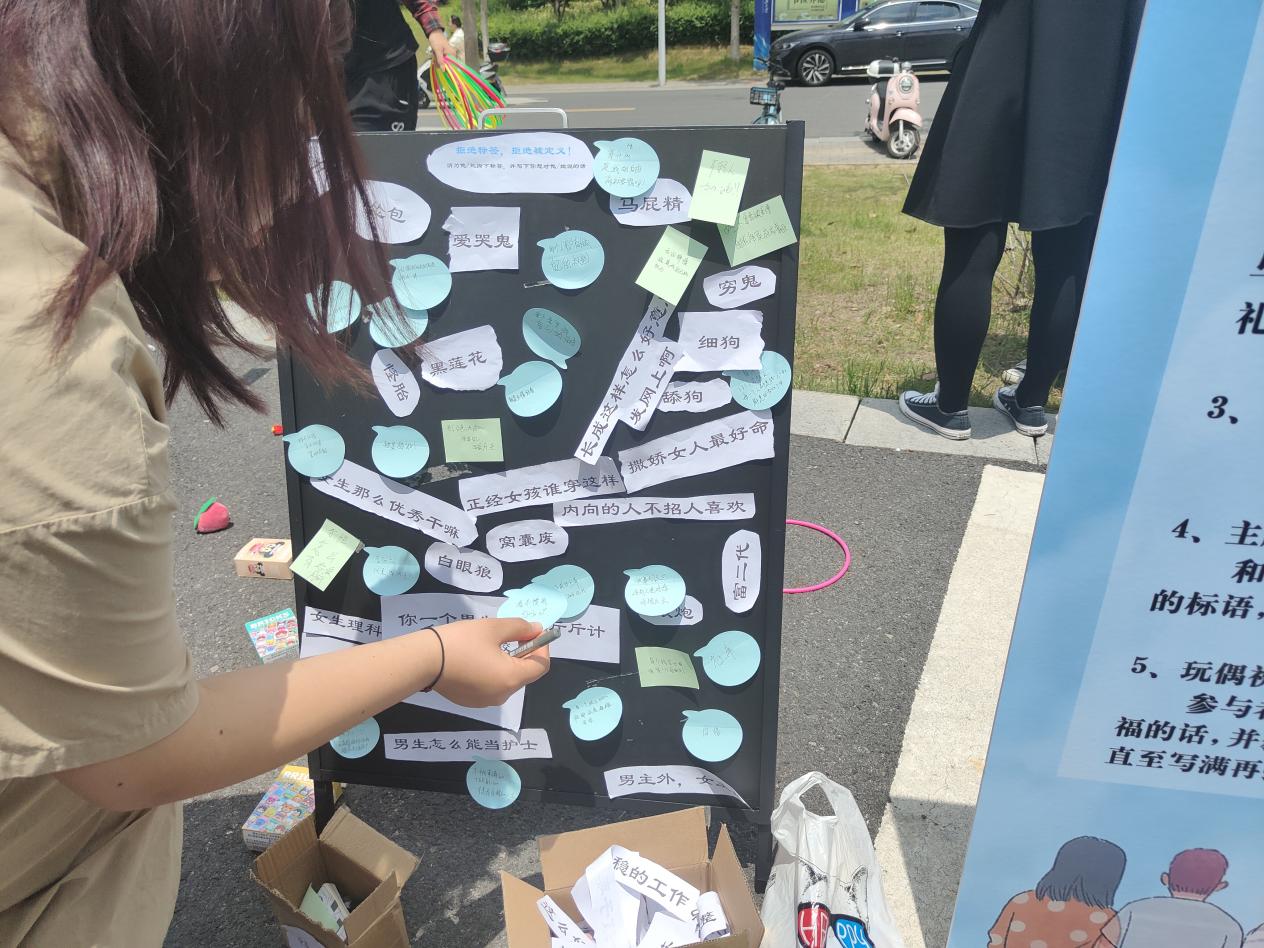 在活动中,有男生撕掉那些定义女性的标签,也有女生撕掉定义男性的标签,并且写下鼓励的话。“大胆些,做自己”“祝大家成功上岸”“让我们都能闪闪发光”……范嘉宇表示:“每个人都是独立的个体,都应该坚持做自己,勇敢做自己,不轻易放弃,追逐心中的梦想,也去帮助他人。”