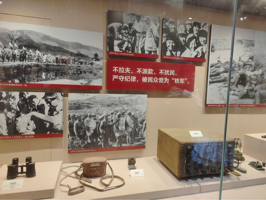 太华山是宜兴红色资源最为丰富的地区之一,素有“苏南小延安”的美誉,是抗日战争后期苏浙皖边区的革命根据地。师生一行在纪念馆讲解员的带领下,依次参观了“一寸山河一寸血,万千儿女万千军”“弯弓射日到江南,铁血儿女鏖战激”“清乡扫荡敌凶残,浴血苏南百战艰”“苏浙皖边新发展,红色太华小延安” “军民鱼水情真切,血肉长城谁能敌”“枪林弹雨何足畏,千秋万代忆英豪”等六大主题馆。沿着新四军全体将士浴血奋战的革命足迹,大家走进了那段战火纷飞的峥嵘岁月,聆听了革命先辈们舍生忘死的英雄壮举。师生们通过实物展示、视频播放、科技互动多角度全面了解了以太华山区为中心的苏南抗日斗争和新四军根据地建设的艰苦历程,感受到了根据地军民鱼水深情,深刻体验了革命烈士忠诚于党、视死如归、革命理想大于天的信念。