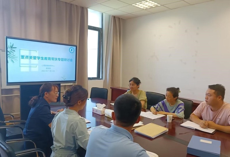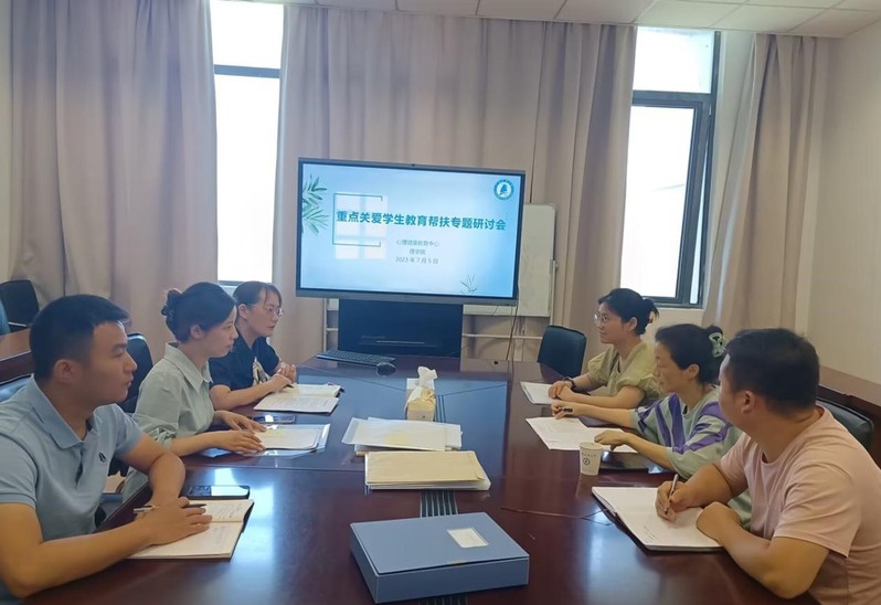 7月5日上午,太阳成集团122ccvip召开重点关爱员工教育帮扶专题研讨会,心理健康教育中心王爱萍老师与公司全体辅导员共同探讨重点关爱员工的健康成长和学业发展。