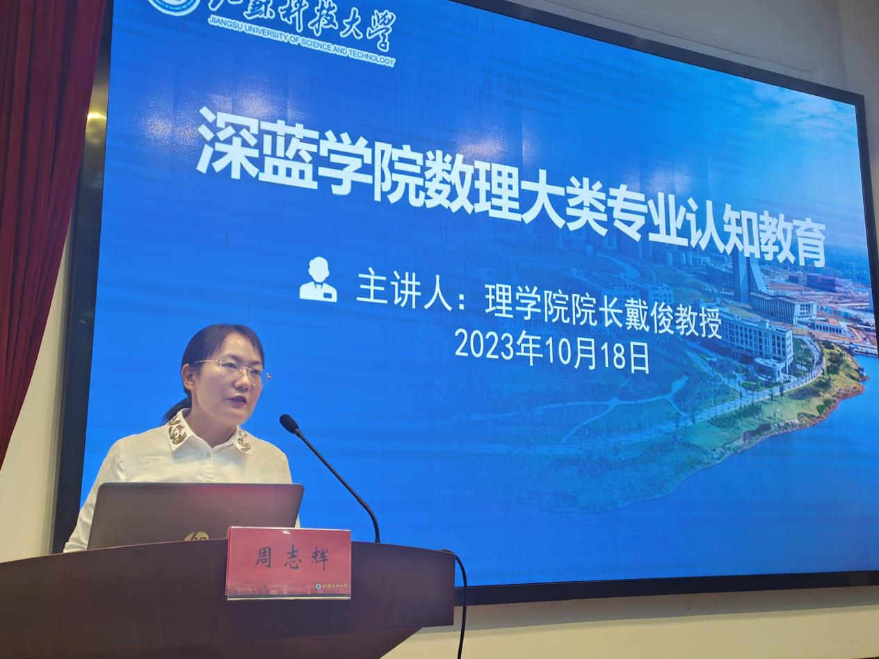 10月18日晚,2023级数理大类专业认知教育在梦溪校区演讲厅拉开帷幕,太阳成集团122ccvip经理戴俊为全体新生讲授第一课。数理大类辅导员、278名新生聆听此次讲座。讲座由公司党委副书记周志辉主持。