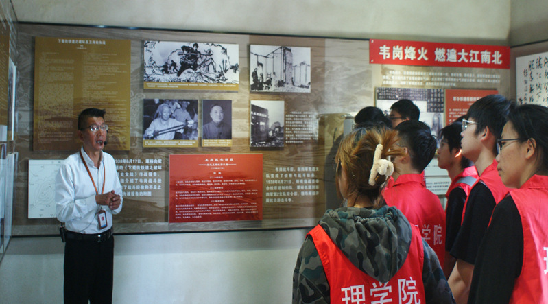 “1938年6月17日8时许,日军30余人,分乘5辆汽车由镇江南驶入,当其进入伏击地域后,伏击部队突然发起猛烈攻击,奋勇冲杀,与日军展开白刃格斗,激战半小时。” 讲解员沈小保生动地讲述着韦岗伏击战的激烈画面。在参观过程中,一张张泛黄模糊的照片、一件件饱经沧桑的文物,将同学们带回了那枪林弹雨、硝烟弥漫的战争岁月。大家深刻感受了这段光荣历史中的“首战必胜、探索进取、担当创新”文化内涵。
