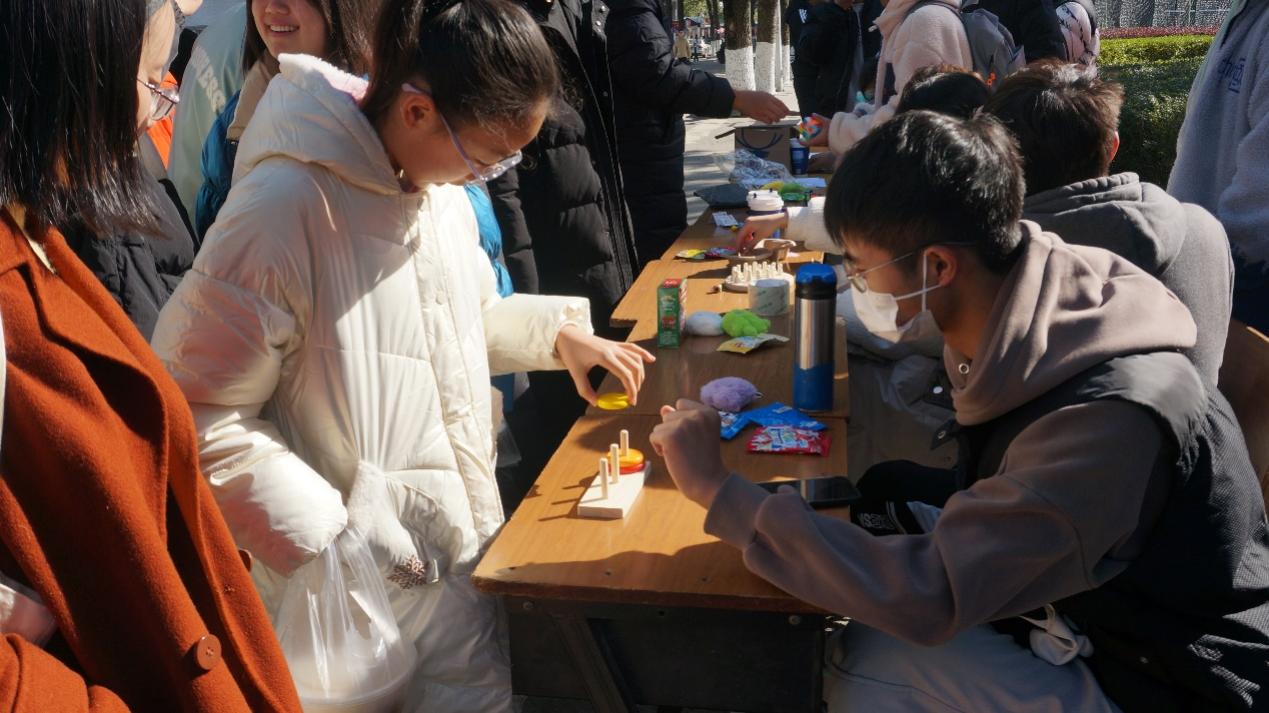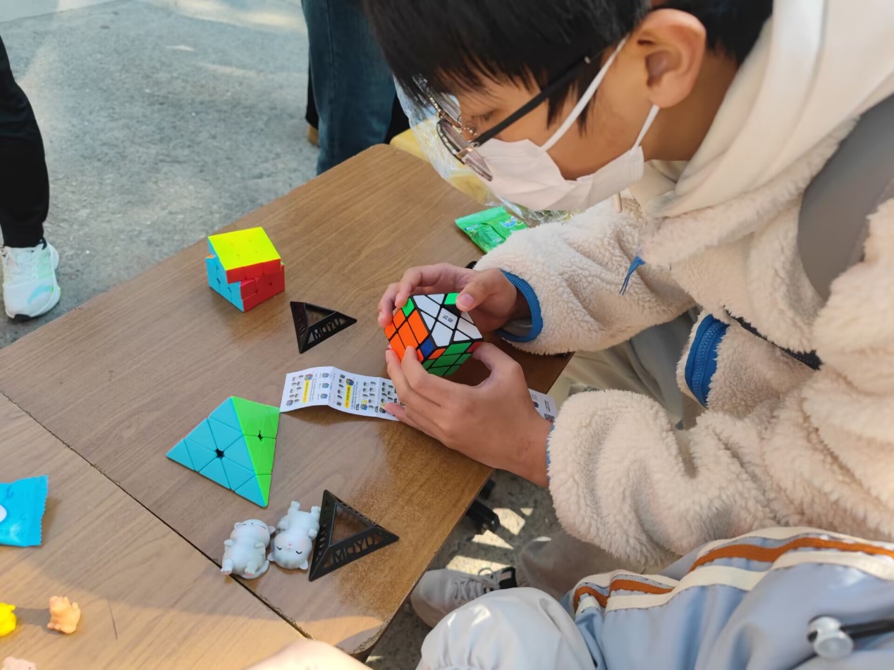 2023年12月2日,数学建模社与创新创业协会在梦溪校区员工食堂门口联合举办了“乘数学之周,遨双创之海”活动。本次活动一共设有四个小游戏,分别为:数学建模问答、汉诺塔、记忆布置棋盘、魔方复原。它们对于挑战者的思维能力、瞬时记忆力、空间理解能力和对于数学建模的相关了解有着一定的考验。