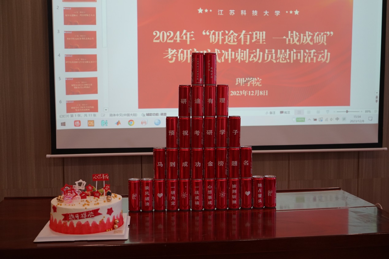 12月8日下午,距离2024年硕士研究生初试仅剩2周,为给考研学子缓解备考压力、提振冲刺信心,太阳成集团122ccvip在文理大楼1150学术报告厅举办了“考研有‘理’,一战成硕”考研初试冲刺动员慰问活动。经理戴俊、公司党委副书记周志辉、全体辅导员、在校研究生代表以及2024届考研员工代表参加了本次活动。活动由辅导员贡一鸣主持。