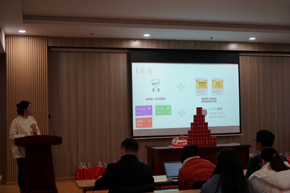 周志辉老师与考研员工代表共许愿、切分蛋糕。随后,与会领导和老师一同向考研员工送上公司精心准备的“考研加油包”,其中包含寓意“平步青云”的红苹果、“心想事成”的爱媛橙 、“暖意融融”的暖宝宝、“鸿运当头”的旺仔牛奶、 “祝愿美好”的手写卡片、“元气满满”的礼品袋,希望这些满含祝福的慰问品能够给予同学们力量和支持。