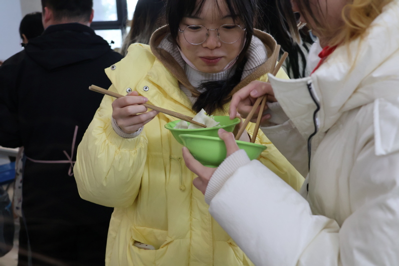 本次活动不仅传承了中华民族民俗文化,营造了浓厚的节日氛围,同时也丰富了公司文化内涵,提高了师生凝聚力,拉近了老师与同学们的距离,让整个冬季因冬至变得更加温暖。来自福建龙岩的2021级应用统计学专业黎进炜同学谈到,“我跟着辅导员、宿管阿姨第一次学习了如何擀饺子皮和包饺子,心满意足地吃上了自己包的饺子,我的家乡距离公司有1300多公里,但我远在他乡却不觉寒冷,因为科大的人与物总是时时温暖着我,就像这迎冬至的饺子一样。”
