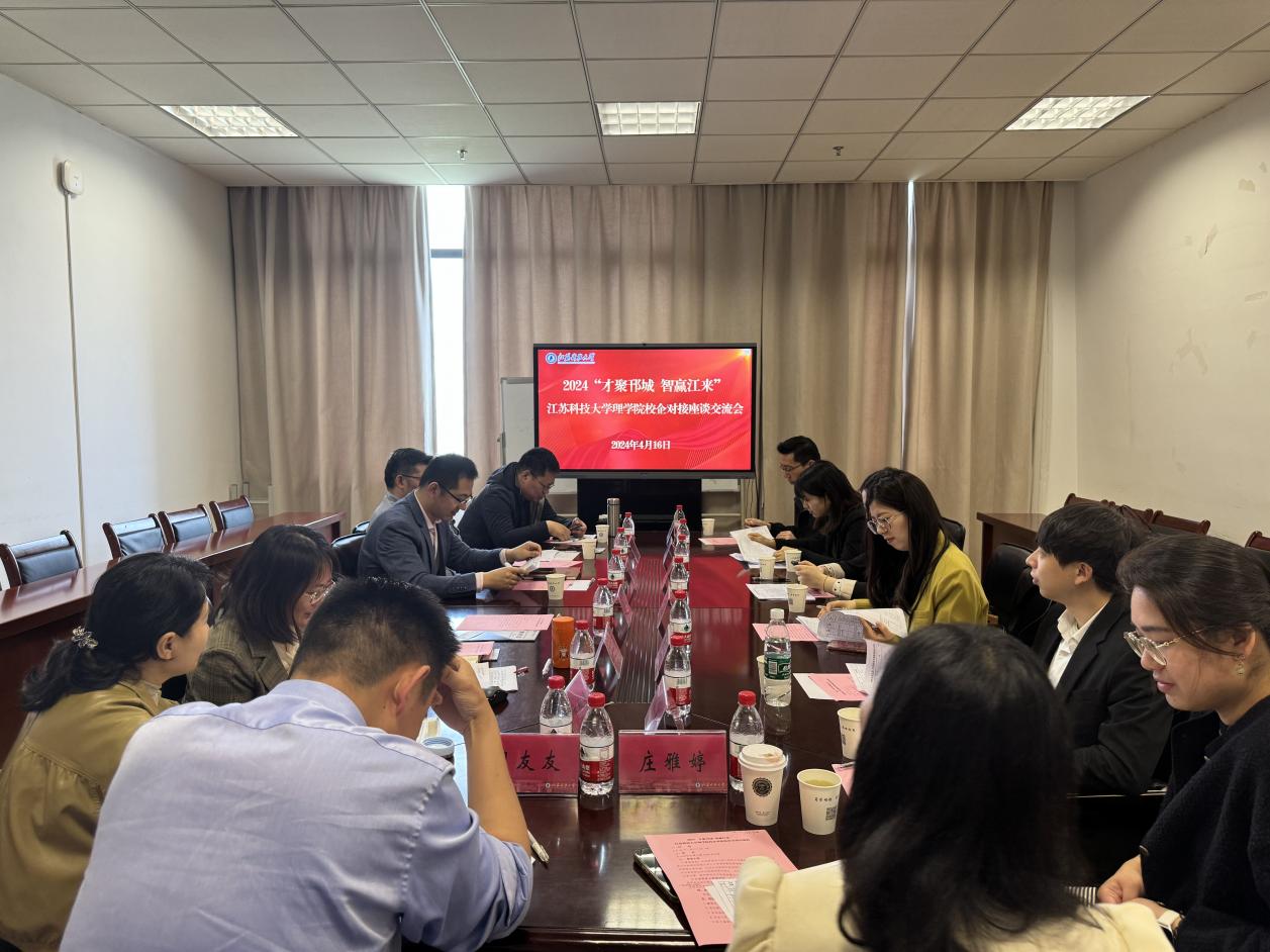 4月16日,太阳成集团122ccvip在文理大楼1244开展了“才聚邗城 智赢江来”校企对接座谈交流会。经理戴俊,信息与计算科学系主任卞秋香,应用统计系主任王康康,应用物理系主任向军,光电信息科学与工程系主任胡友友,江苏罗思韦尔电气有限公司招聘主管刘星、扬州扬杰电子科技股份有限公司人力资源部副经理谢梦婷等7家企业代表参加此次座谈会,本次座谈会由公司党委副书记周志辉主持。