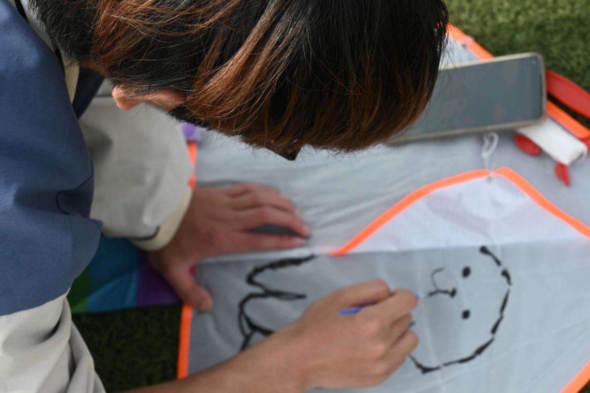 伴随着一片欢声笑语,大家三人一组,发挥想象在风筝上进行涂鸦和绘画,随后放飞了自己亲手绘制的、承载着美好祝福和愿望的风筝。大家在绿茵场上奔跑着,洋溢着青春的活力,感受着春日的气息。