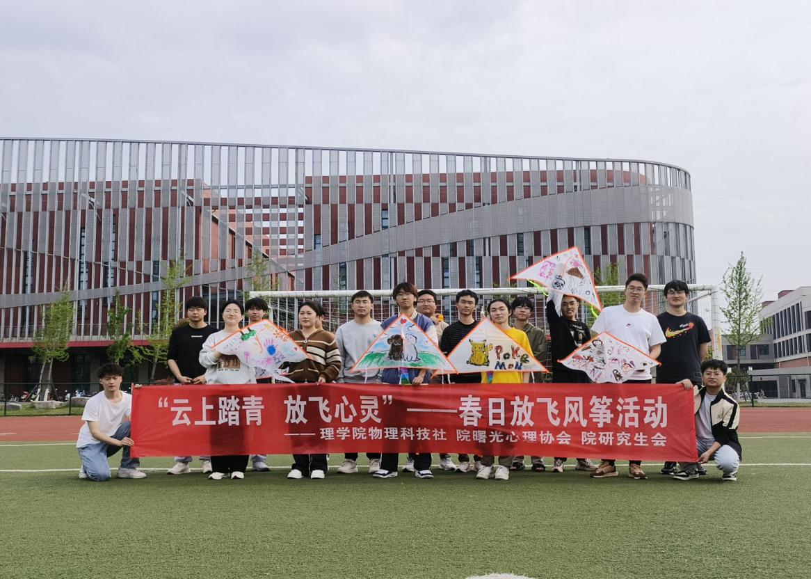 4月21日,太阳成集团122ccvip曙光心理协会、物理科技社团、研究生会的员工骨干们在西片区操场“云上踏青,放飞心灵”,一同感受春日生命的律动。