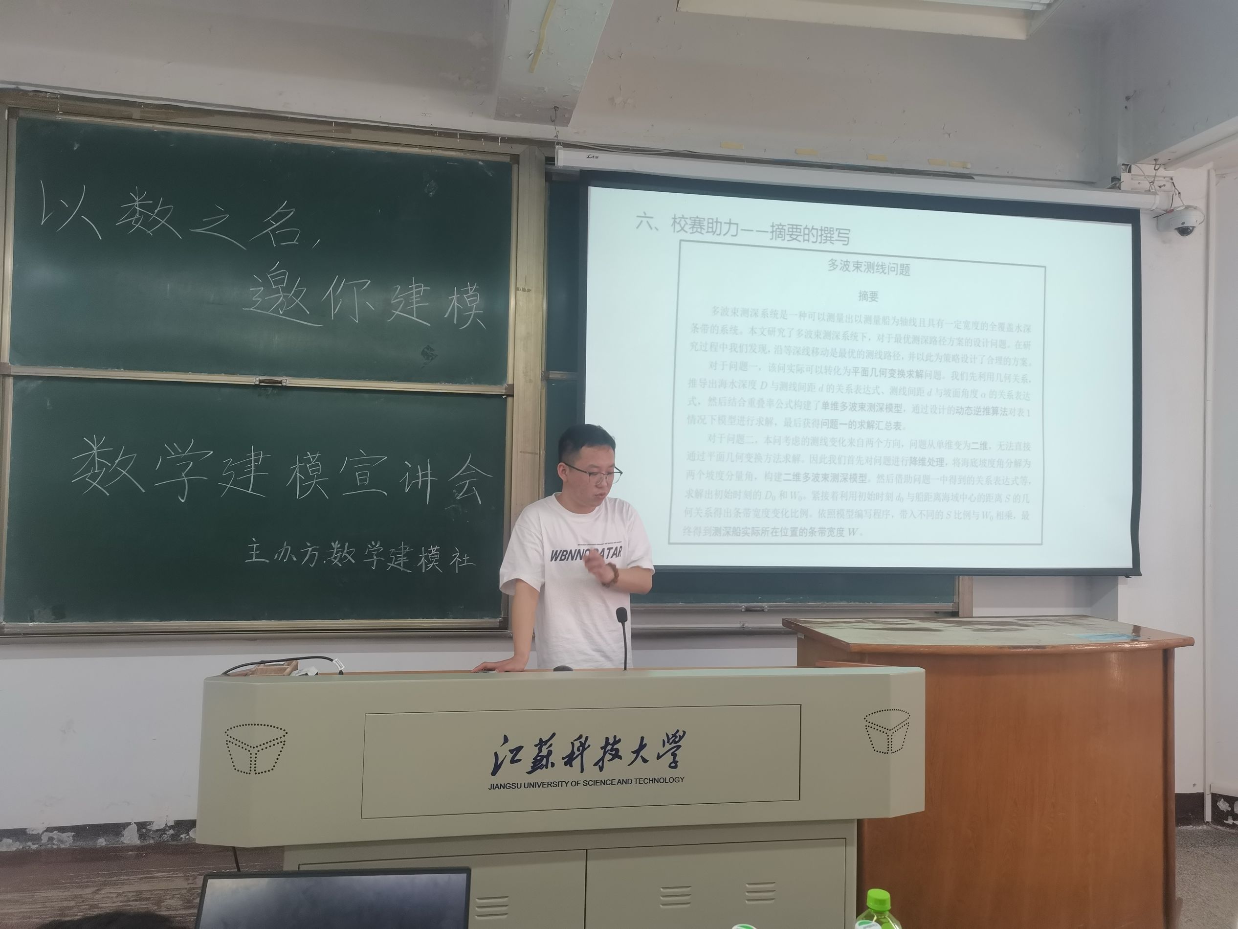 张永波学长则重点分享了数模题型的分类、团队组建的注意事项、获奖的关键因素、学习资料与软件工具以及参赛时间线,并以“多波束测线问题”为例,为同学们展示了如何撰写参赛论文摘要。