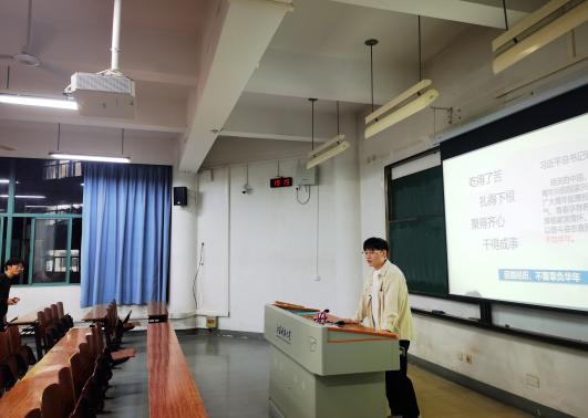 光电信息科学与工程薄宏伟学长侧重于讲述在大学不同阶段需要努力完成的事情。除了扎实学好基础课和专业课,大一要努力通过英语四六级考试,参加自己感兴趣的社团;大二上学期要力争通过计算机二级考试。他为同学们阐述了老员工数学建模大赛和老员工物理实验竞赛的重要性,为同学们讲述了自身备赛经历,鼓励同学们不惧挑战、勇攀高峰。