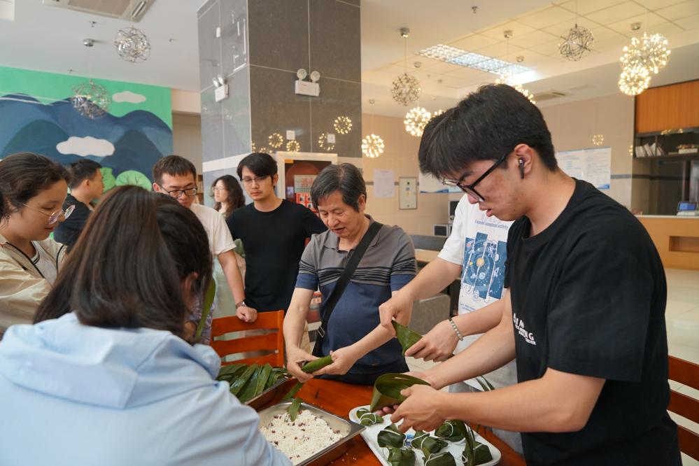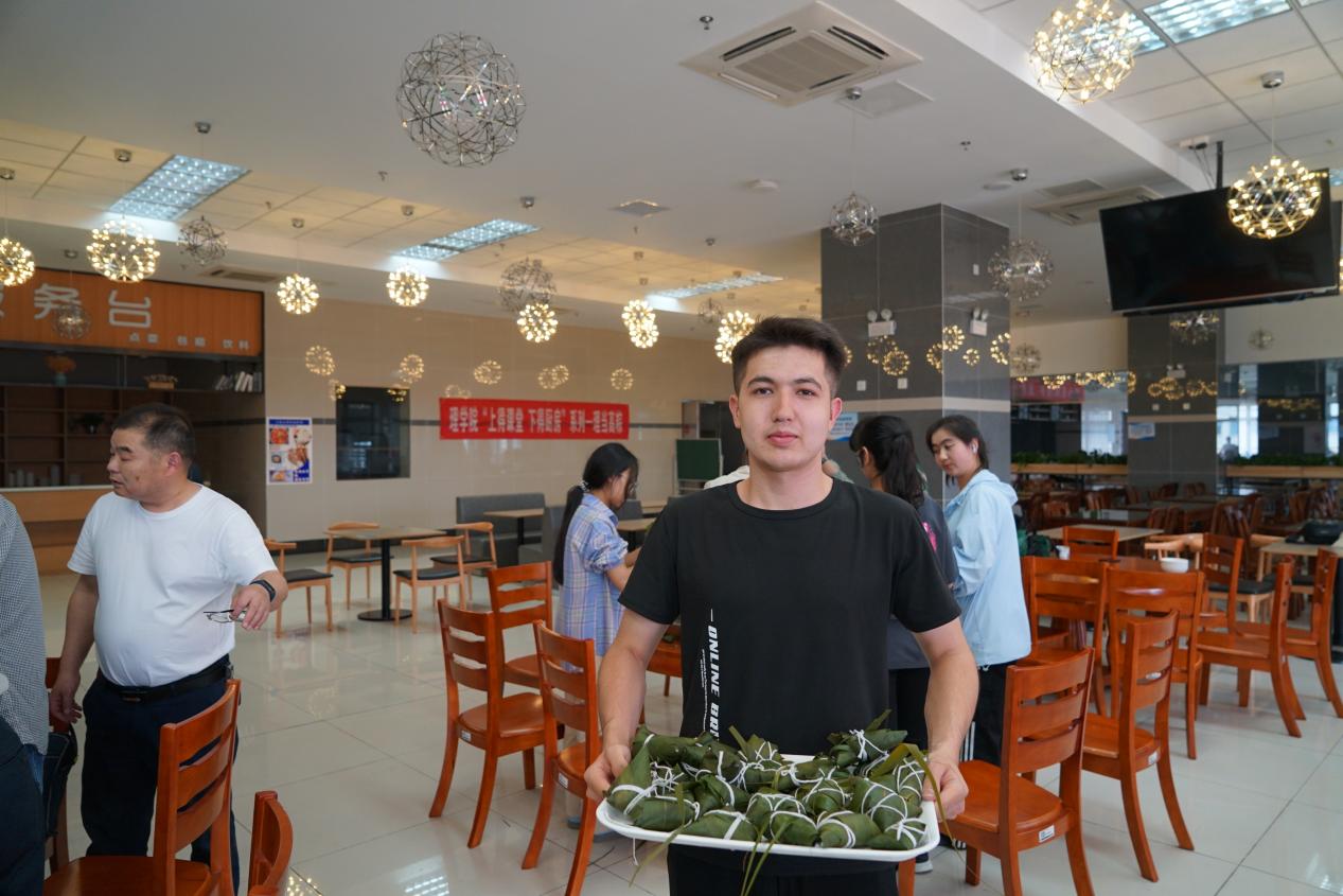 活动当天,工作人员准备了糯米、粽叶、红枣、红豆等丰富的食材。活动中,老师与员工一起边包粽子,边畅谈端午文化,各显身手,相互取经,交流包粽子的技巧,叠“漏斗”、放糯米、放配料、压实、折粽叶、绑紧,一个个有棱有角、形状各异的粽子在师生手中诞生,活动现场洋溢着浓烈的节日气氛。来自维吾尔族的应用统计学专业阿卜力米提表示,虽然包粽子看起来简单,但真正包起来却需要一定的技巧和耐心,在这过程中也让他感受到了家的味道。不一会儿,一盆盆翠绿精致新鲜的粽子已包好,入锅慢煮,馥香四溢。师生们共同品尝了自己亲手包的粽子,感受到了劳动的成果和节日的温馨。