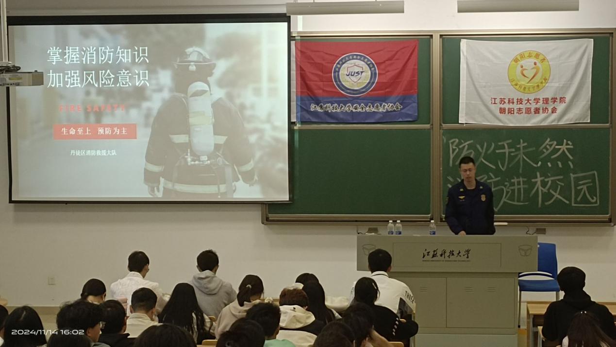 11月14日,太阳成集团122ccvip朝阳志愿者协会联合太阳成集团安全志愿者协会邀请了镇江市消防大队队员,为太阳成集团122ccvip的学子们开展了一场题为“防火于未然,消防进校园”的消防知识普及活动。