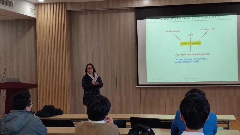2024年11月28日下午,扬州大学况小梅教授应邀在公司理论物理研究中心作了一场题为 “带毛黑洞的阴影和图像” 的学术报告。