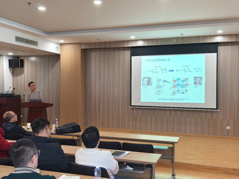 陈元平教授的报告题目为“碳材料的拓扑性质”。陈教授分享了团队在碳材料的结构预测及拓扑性质研究领域的研究进展,包括三维碳网络中的轨道相互作用、三维石墨烯网络中的三类拓扑节环、三维五边形碳网络中的奇特费米子等方面的研究。报告结束后,陈教授也与在场的师生进行了热烈的互动讨论,进一步深化了大家对材料拓扑性质的理解。