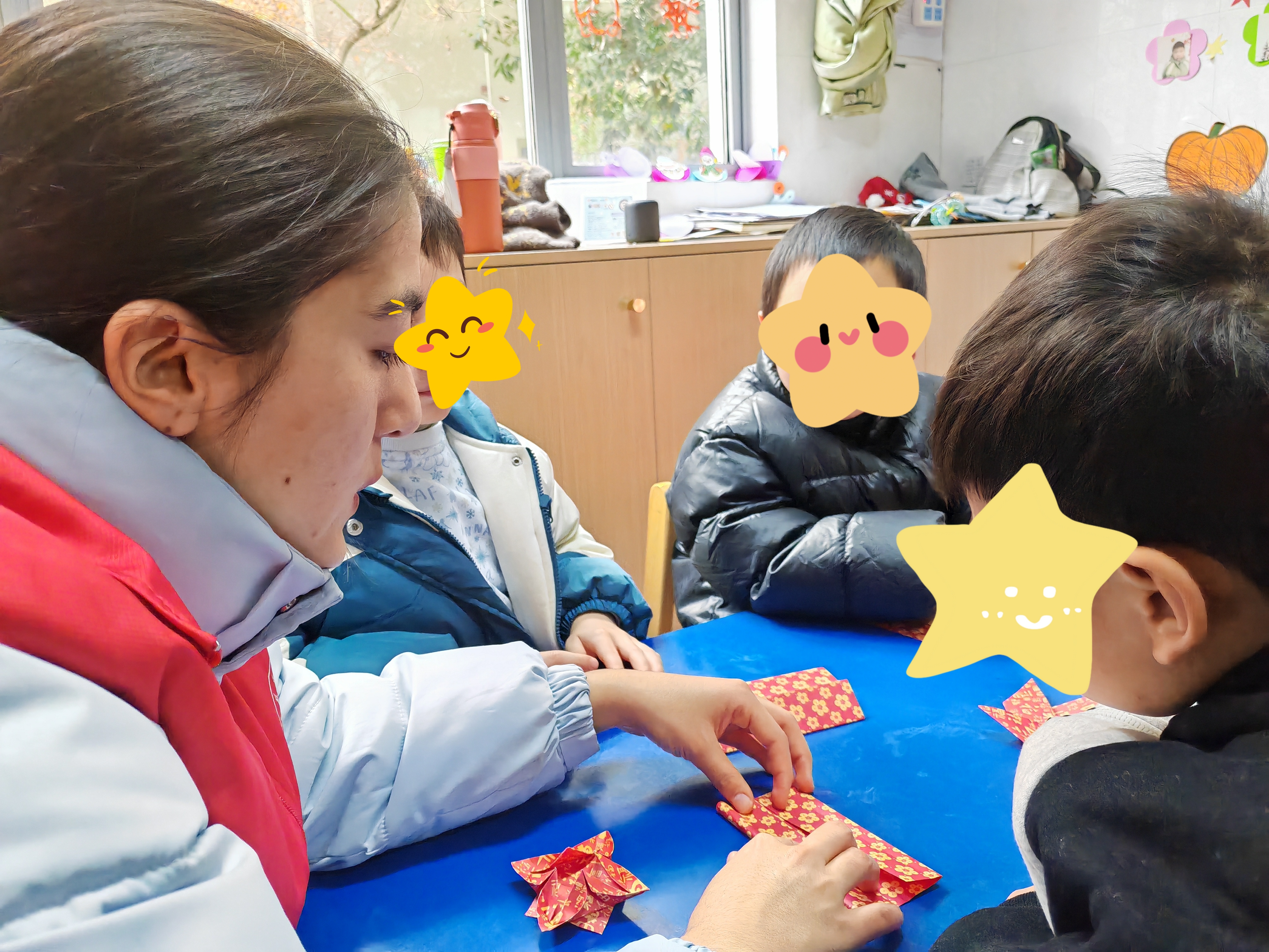“指尖创艺梦工坊”,志愿者与孩子们围坐一堂,耐心地指导着孩子们如何折叠纸张、粘贴材料,以及如何发挥想象力来创作属于自己的独特作品。他们灵巧的小手在纸上翻飞,一朵朵纸艺花朵、一个个动物书签......这些作品不仅凝聚了孩子们的童真与创意,更承载着志愿者的关爱与期望,志愿者纷纷表示,能够参与到这样的活动中来非常有意义。