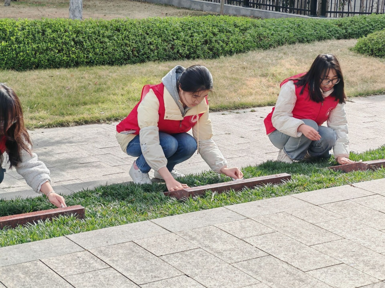 图二 志愿者们仔细地擦去墓碑上的灰尘