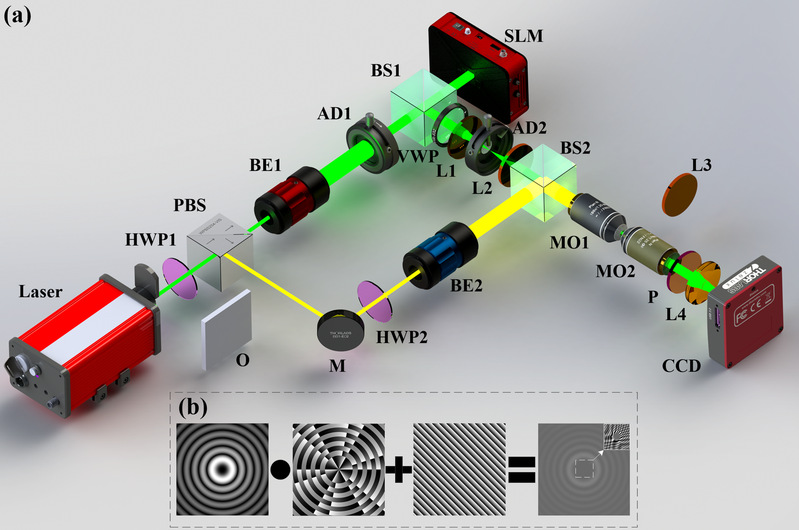 近年来,空间光调制器(SLM)作为一种新兴的光学操纵设备,可以通过加载全息相位图来实现相位调制,具有转化效率高、相应速度快、光谱范围宽等特点,使得其在结构光束的产生及应用领域有着广泛的应用前景。而贝塞尔-高斯幂指数相位涡旋光束(RP-BG-RPVBs)作为幂指数相位涡旋光束和贝塞尔光束的结合产物,同时具备两者特殊的花瓣形强度分布以及传输无衍射和自恢复特性,在光学捕获、光学通信等领域有着无限的潜力。