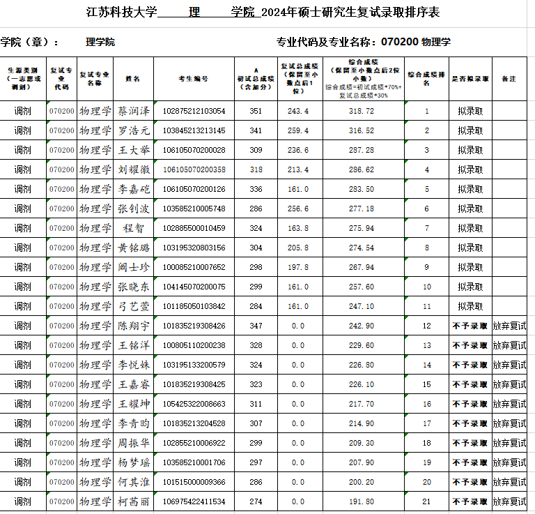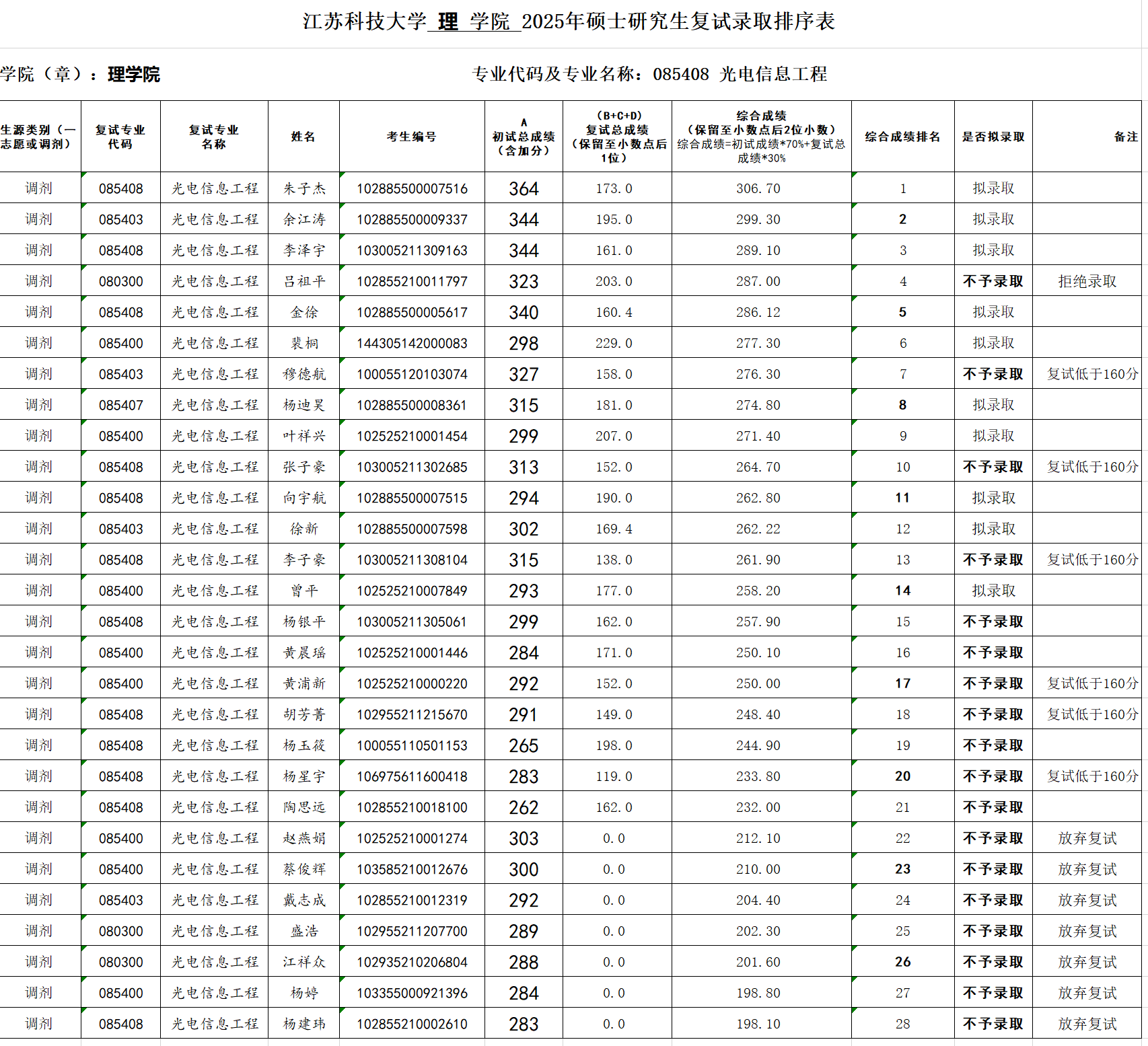根据太阳成集团122ccvip研究生复试细则(已发布公告),2025年太阳成集团122ccvip物理学学硕、系统科学学硕、光电信息工程专硕和应用统计专硕第一批调剂复试成绩公示如下: