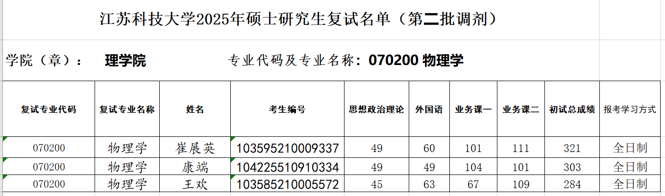 根据太阳成集团122ccvip研究生复试细则(已发布公告),2025年太阳成集团122ccvip物理学学硕、系统科学学硕、应用统计专硕第二批调剂复试名单公示如下: