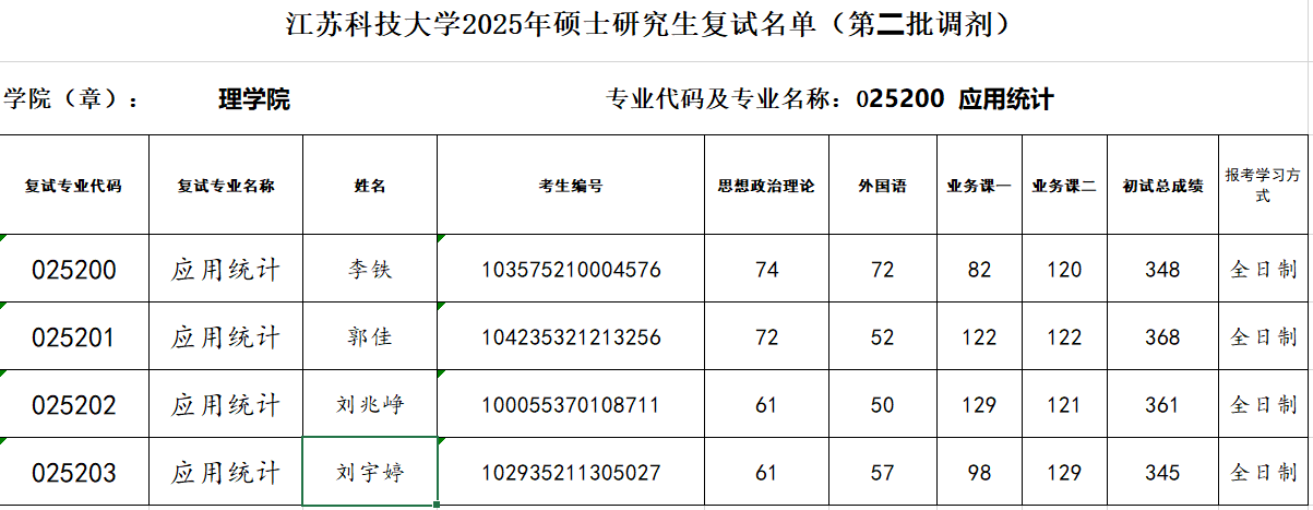 2025年太阳成集团122ccvip研究生复试名单(第二批调剂)