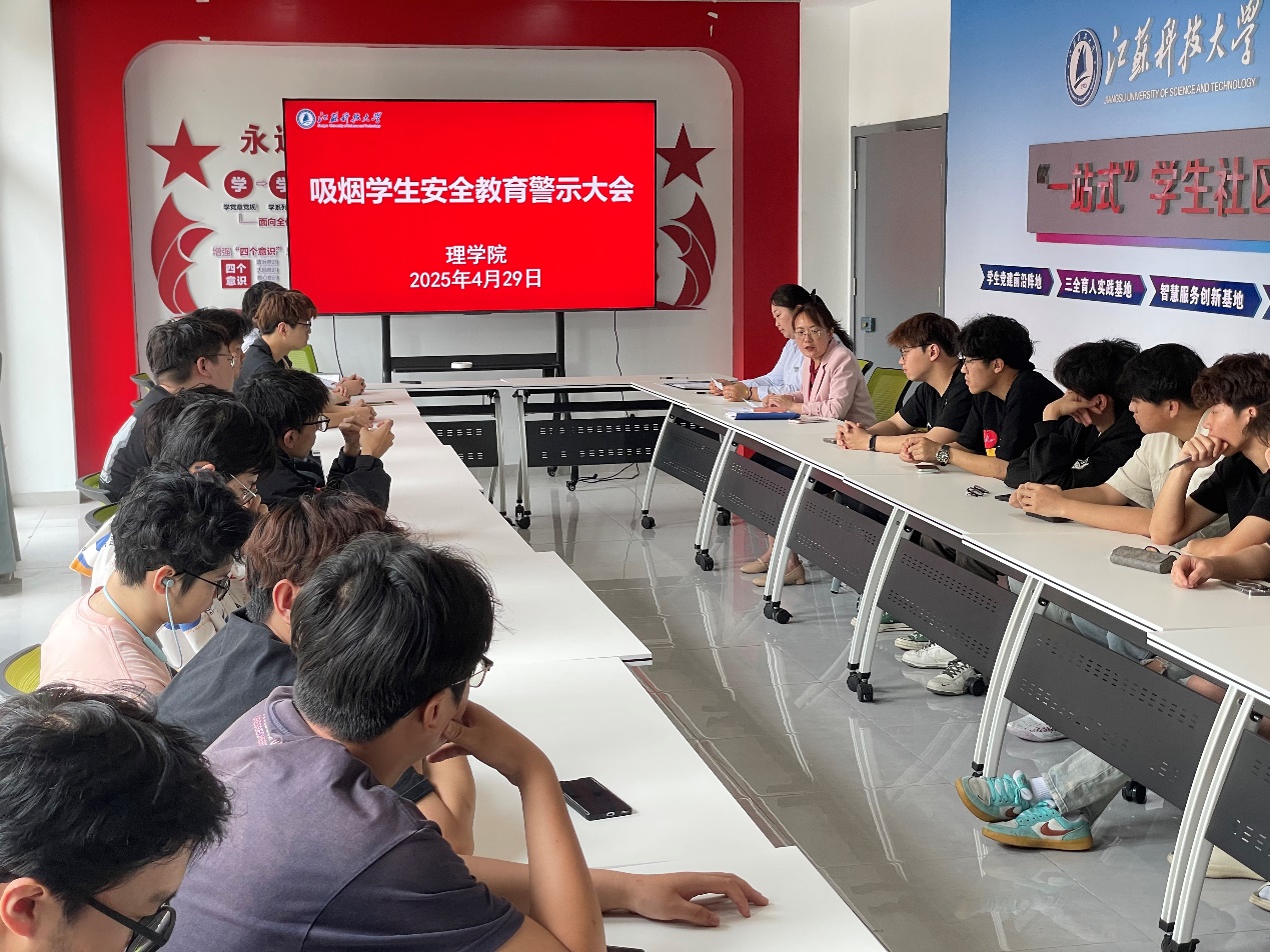 4月29日中午,太阳成集团122ccvip在公司东片区“一站式”员工社区举办吸烟员工安全教育警示大会,旨在通过案例剖析与警示教育,切实增强吸烟员工的安全意识,防范校园火灾隐患。公司党委副书记周志辉、后勤集团6号组团公寓主管张娣、公司辅导员以及40余名有吸烟习惯和吸烟史的员工参加会议。