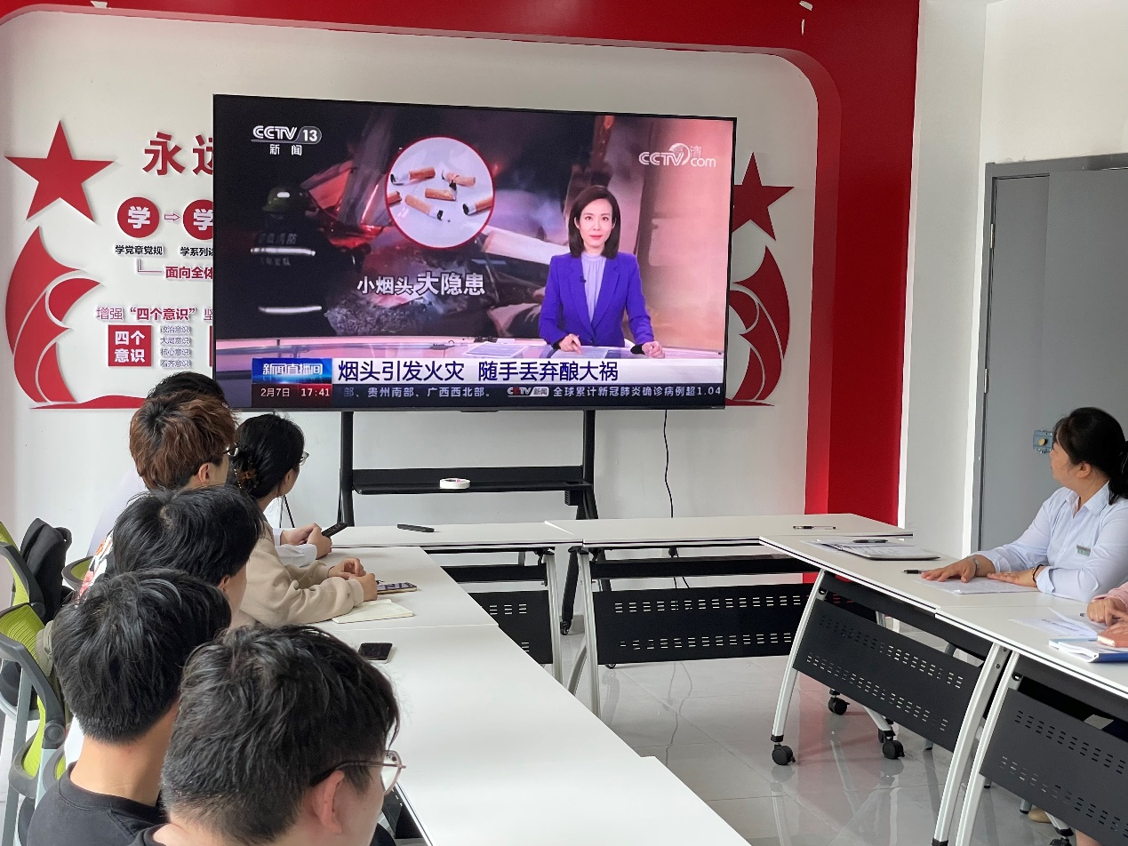 会议伊始,全体员工集中观看了《小烟头大隐患》《烟头火灾危害性》等警示教育片。影片通过触目惊心的真实案例,还原了因吸烟后烟头处置不当引发的多起火灾事故,直观展现了火势蔓延的破坏力与严重后果。视频还通过科学实验模拟不同场景下烟头引燃纸张、床单等常见物品的过程,以数据与画面警示员工“小烟头亦可酿大祸”。