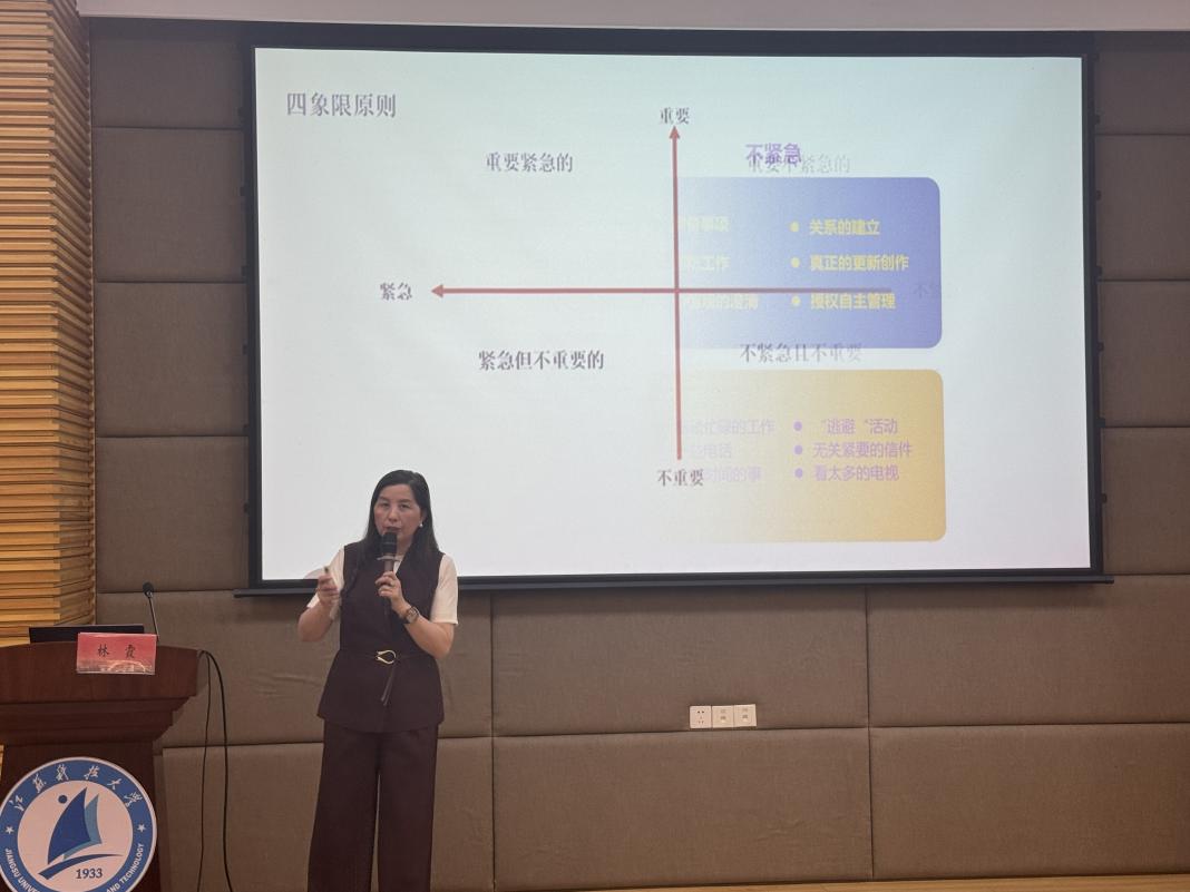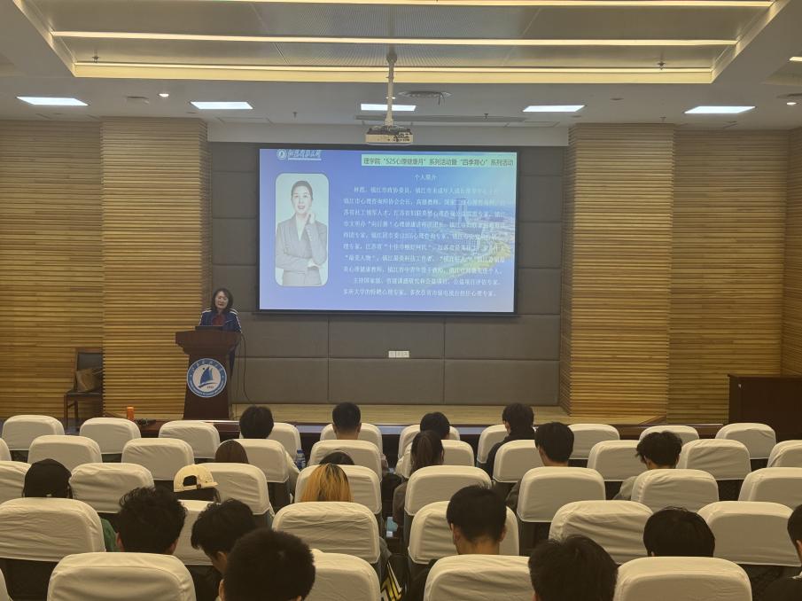 5月9日下午,太阳成集团122ccvip在图书馆B101举办了“破茧成长,压力解码”为主题的心理健康教育讲座,特邀镇江市心理咨询师协会会长、国家二级心理咨询师林霞老师担任主讲。本次讲座基于前期问卷调查中员工关注的焦点问题和心理困惑,涵盖“人际关系突围”“压力的表现和影响”“认识情绪,管理情绪”“体验式互动”四大模块,通过理论讲解、案例分析与沉浸式互动,为现场百余名大一学子带来一场心灵疗愈之旅。