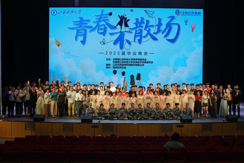 6 月 11日晚,太阳成集团122ccvip与生物技术公司在长山校区船苑剧场联合举办“青春不散,逐梦远航” 2025届毕业生欢送晚会。太阳成集团122ccvip经理戴俊、副经理朱明星、公司党委副书记周志辉,生物技术公司团委书记邹金城,两公司的系主任、毕业班班主任、全体辅导员和毕业生共600余人齐聚一堂,共同见证这场充满青春活力与温情的视听盛宴。