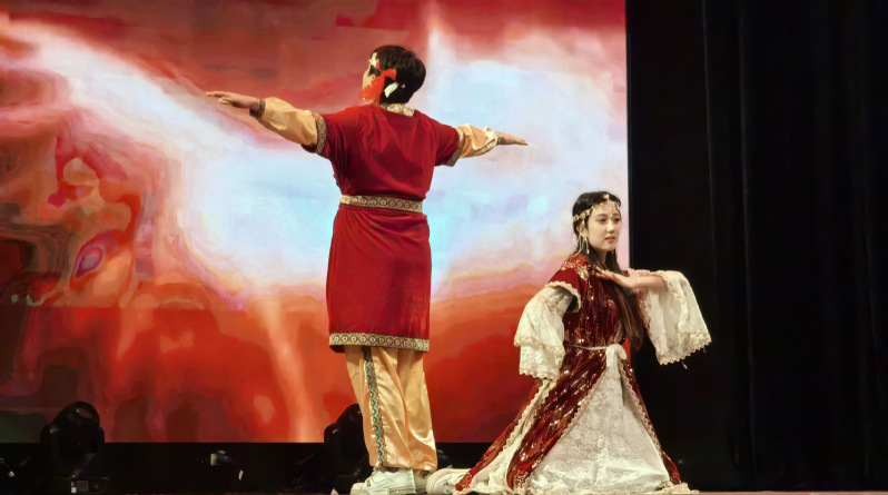 晚会伊始,歌曲《爱笑的眼睛》率先唱响,甜美的旋律拉开晚会序幕,接下来的歌曲《违背的青春》《方的言》《知足》,将观众带回充满欢声笑语的校园岁月。rap《谁的错》,以其独特的节奏韵律深刻剖析了人生选择中的困惑与挑战,引发深思。生物技术公司带来的小品《破茧》,用生动的演绎展现突破困境、磨砺自我的坚韧精神。绸扇舞《春庭雪》和街舞《igloo》各具特色,为晚会增添了别样风采。而民族舞《恋》,以优美舞姿展现浓郁民族风情,将气氛推向小高潮。