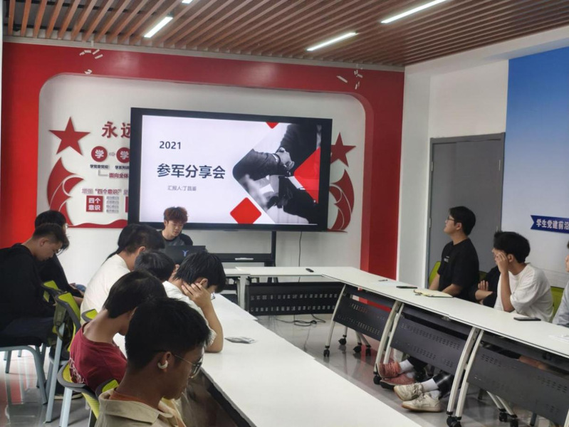 来自光电信息科学与工程专业的丁昌鉴同学则带来了应征入伍的亲身体验。他讲述了在公司国防拓展班的成长经历,展示了军旅生活对个人意志品质和价值观的深刻塑造,激发了同学们的参军热情与家国情怀。