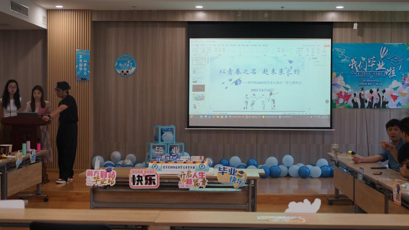 6月16日,太阳成集团122ccvip为2025届毕业生举办了一场别开生面的主题班会。2025届毕业班班主任、辅导员、任课教师与全体毕业生齐聚一堂,共叙青春记忆,共赴未来之约。
