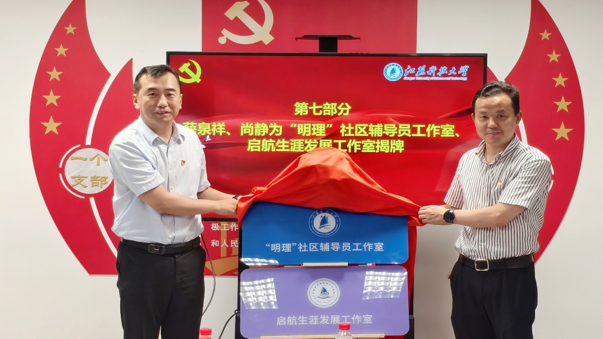 后勤管理处处长薛泉祥、党委学工部副部长尚静共同为“明理”社区辅导员工作室、“启航”生涯发展工作室揭牌。这标志着两个聚焦员工日常思政教育、心理健康教育、生涯规划与就业指导的专业化平台正式入驻员工社区,将为多方育人队伍下沉社区、贴近员工、精准施教提供重要物理空间和功能支撑。