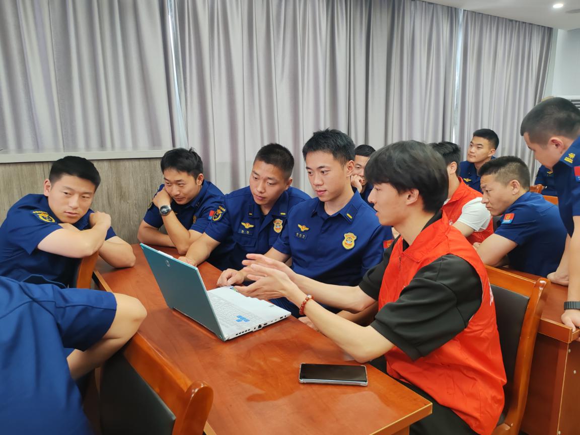 图3:志愿者为消防员讲解AI制作PPT实操